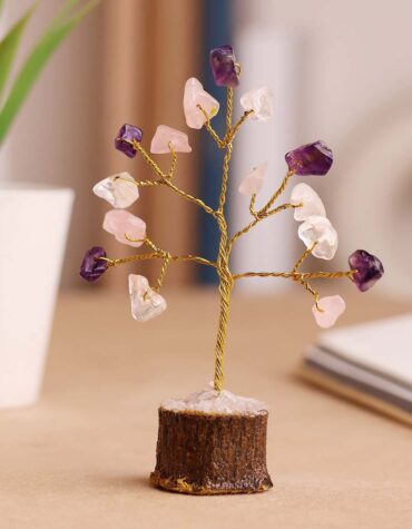 Healing Crystal Tree / Feng Shui Tree Benefits and Properties The choice of crystal tree depends on what you want to manifest in your home or office. Crystal tree benefits depend on the crystals used in the tree. Multicoloured crystal trees look beautiful and are a great home decor piece that can bring you joy. Pick the one that resonates with you the most from crystals like: Amethyst – Protection, Stress, Concentration Citrine – Creativity, Optimism, Manifestation Red Jasper – Contentment, Compassion, Nurturing Red Carnelian – Passion, Creativity, Confidence Lapis Lazuli – Self-awareness, Success, Self-expression Clear Quartz – Healing, Focus, Cleansing Labradorite – Transformation, Protection, Intuitions Green Aventurine – New opportunities, Abundance, Love Rose Quartz – Love, Emotional healing, Positivity Green Jade – Good luck, Fortune, Self-love Black Tourmaline: Guards against negative energies, environmental pollutants and internal conflicts Seven Chakra: attract energy from the cosmos, heals the mind, body and soul Wealth Tree: promote good luck, wealth, prosperity, protection and growth All Rounder/ Multicolor Crystal Tree: curing physical, spiritual and emotional ailments and promoting vitality. Evil Eye Tree: Protection from negative energy, envy, and jealousy also brings you good luck. Gomti Chakra Tree: Blessed with money, good health, happiness, financial…