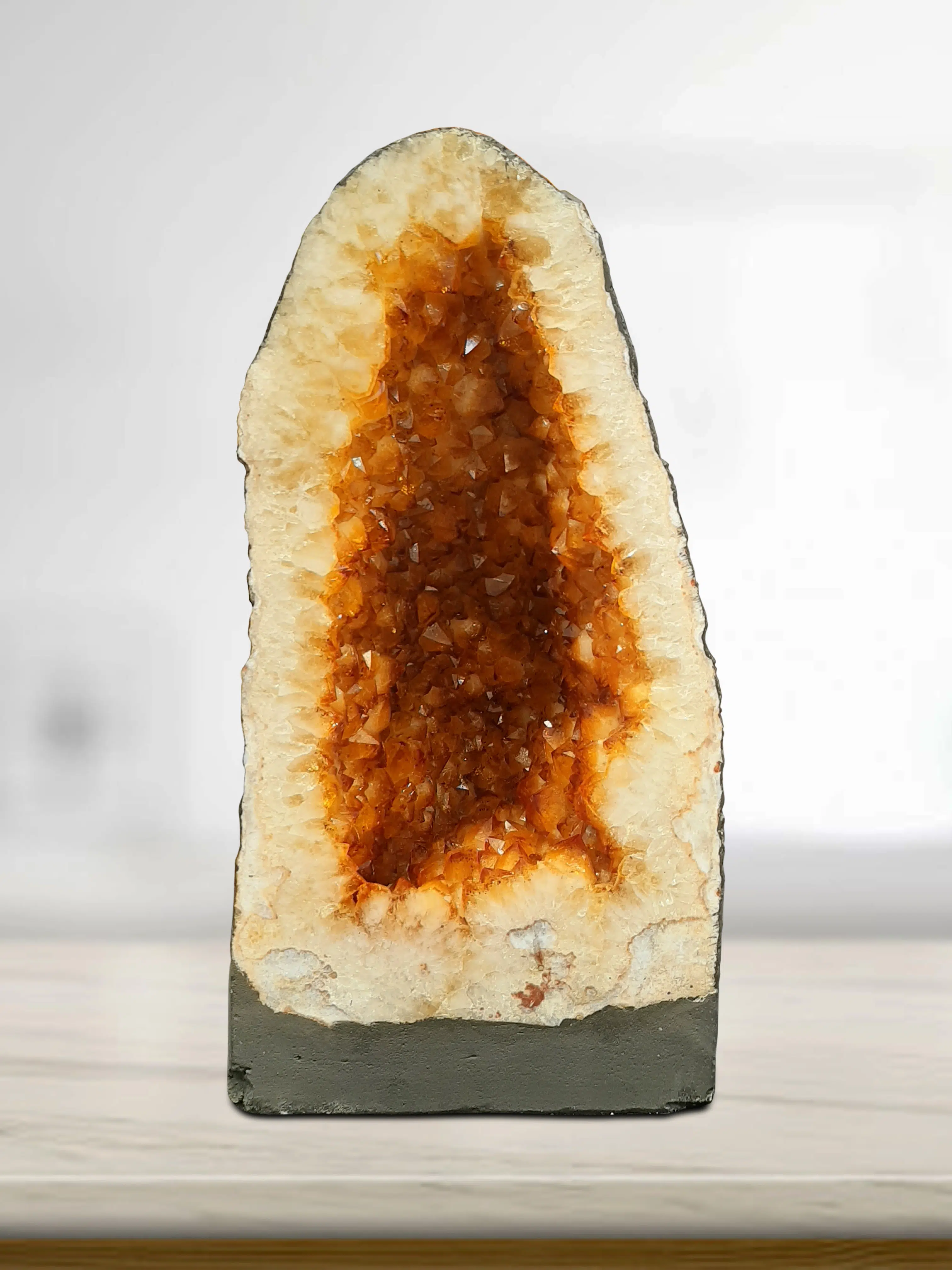 The citrine crystal draws energy from the sun, promoting light and happiness. This crystal gives a feel-good feeling, infusing a positive aura into the environment. If you have a dull space in your home or office, brighten it with a décor made of citrine geodes.