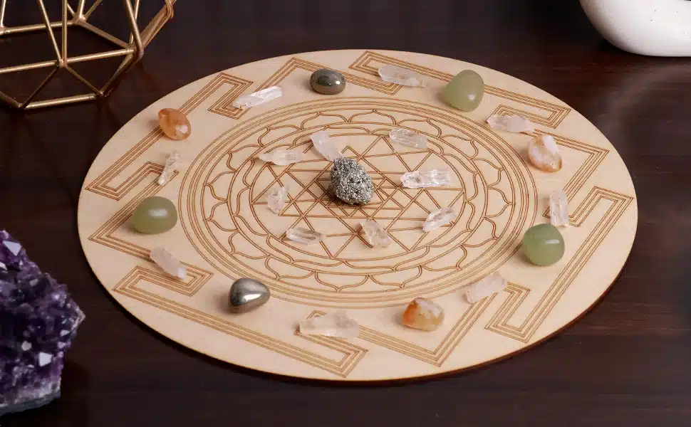 - Rearrange crystals to match your current mood or goals.