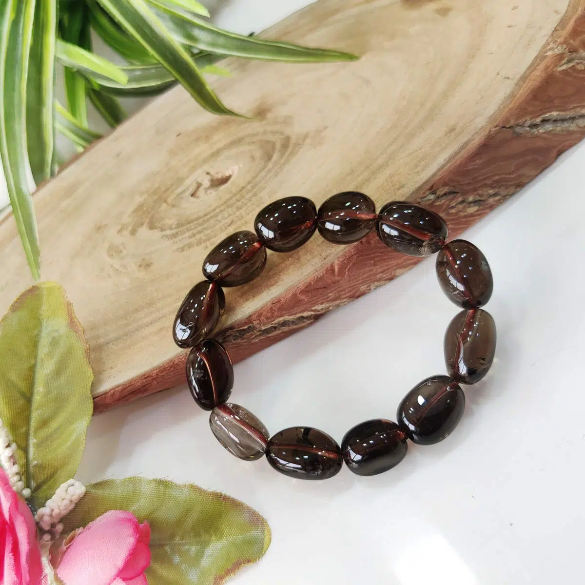 With the detoxifying power of this crystal, you can control your mood swings by wearing our Smoky Quartz Tumble Bracelet.