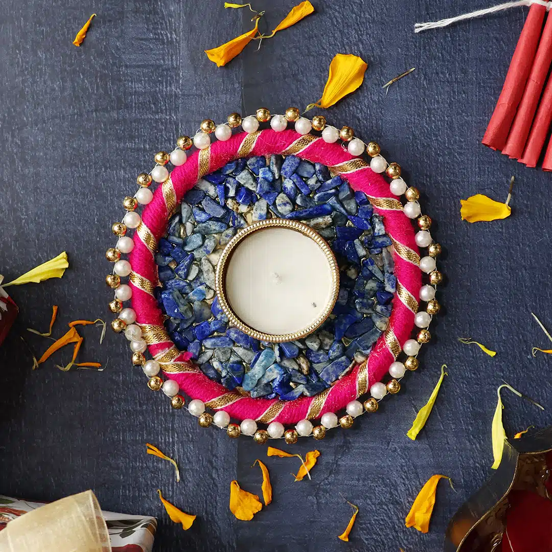 Torans are tied across the doors to bring in positive energy. They are meant to drive away the negative vibrations when someone enters your home. Crystal torans cleanse the aura of those who walk past it. Wealth toran made of wealth stones such as pyrite cluster, citrine, green aventurine, and tiger eye pleases Goddess Laxmi. The combination of these crystals attracts wealth and prosperity. You can also get protection toran made of bronzite, selenite, and black tourmaline. These Diwali torans can also decorate the home or office entrance, even after Diwali.