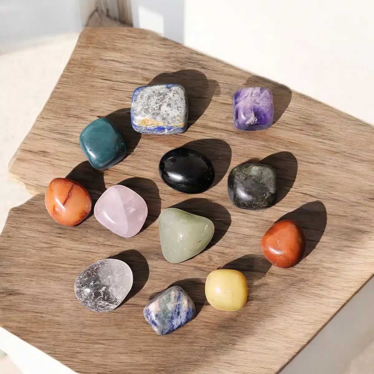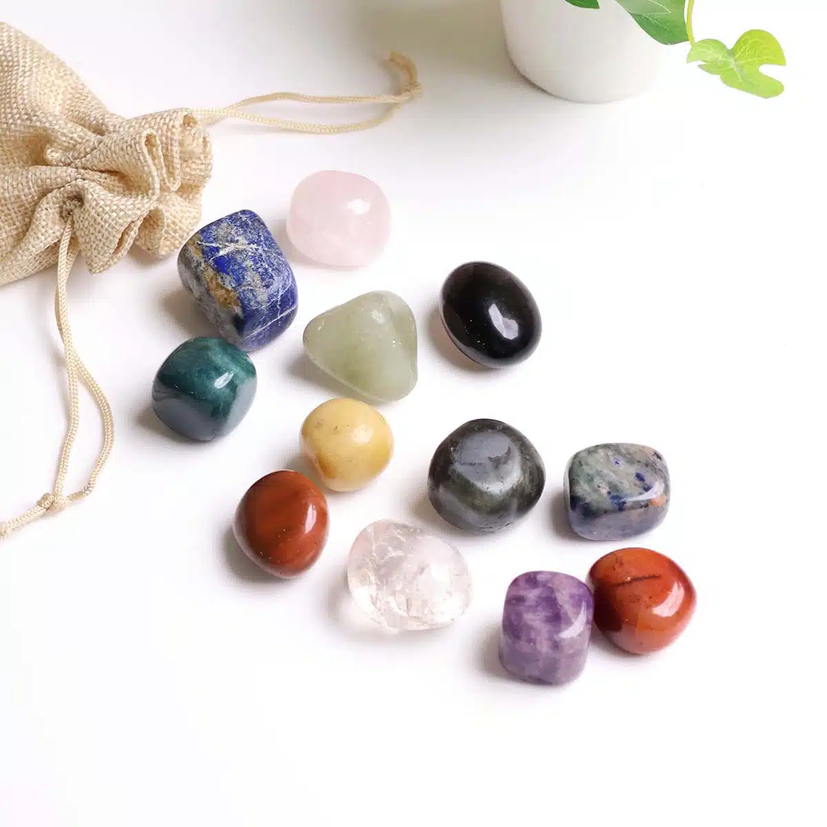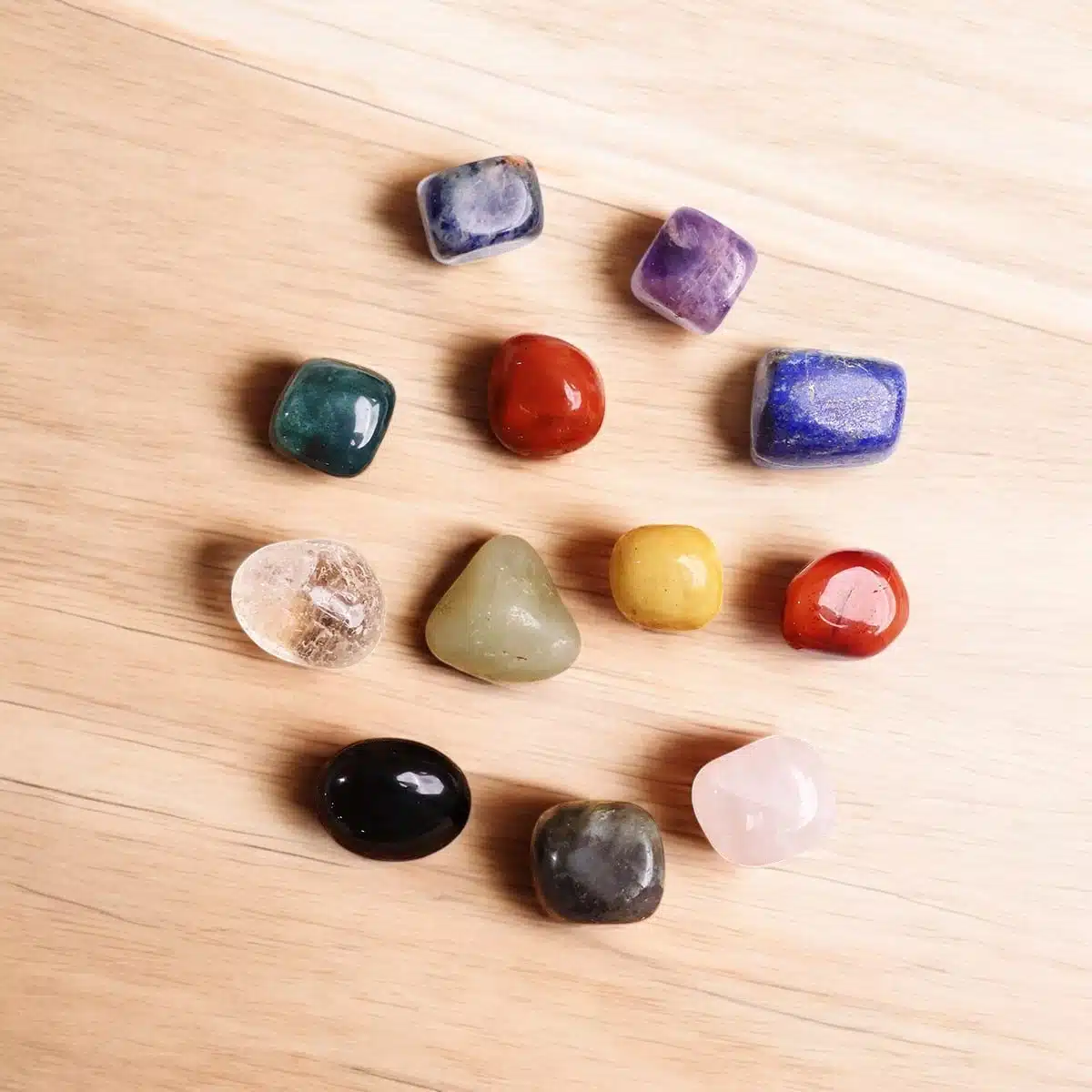 - Our human body has 7 major and 5 minor a total of 12 chakras which determind health and well being.12 Chakra Tumble stone which includes crystals (1) Clear Quartz (2) Labradorite (3) Amethyst (4) Sodalite (5) Lapis Lazuli (6) Rose Quartz (7) Green Aventurine (8) Golden Quartz (9) Carnelian (10) Red Jasper (11) Bloodstone (12) Smoky Quartz. This Crystals for Healing and energize our chakras and help us to lead a healthy life,Motivate our life.