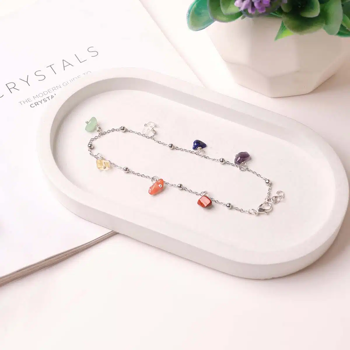 - Each crystal in this anklet corresponds to one of the seven chakras, helping cleanse, balance, and align your energy centers. This supports better emotional flow, mental peace, and spiritual balance.