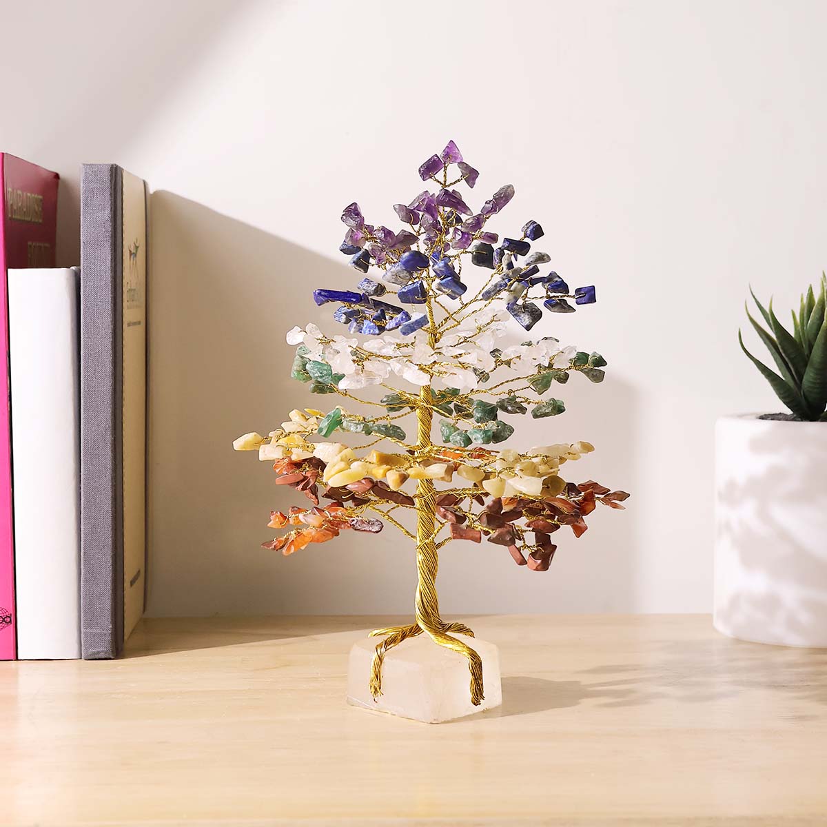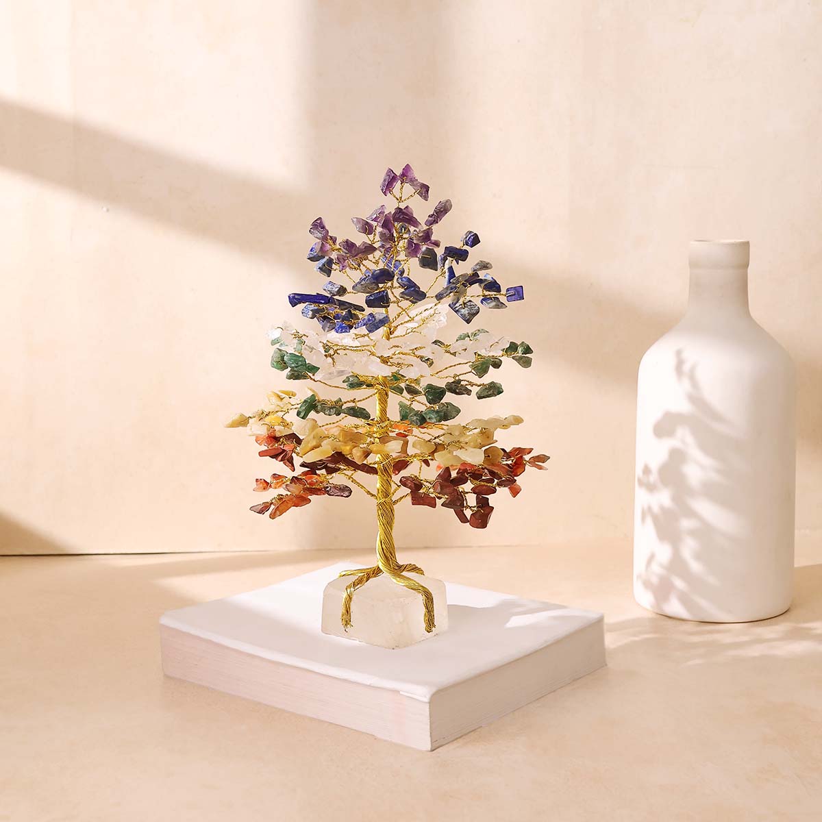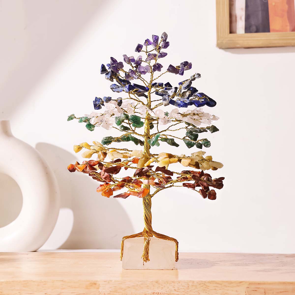 - This tree combines multiple natural stones, each associated with a specific chakra, promoting overall harmony, positivity, and well-being.