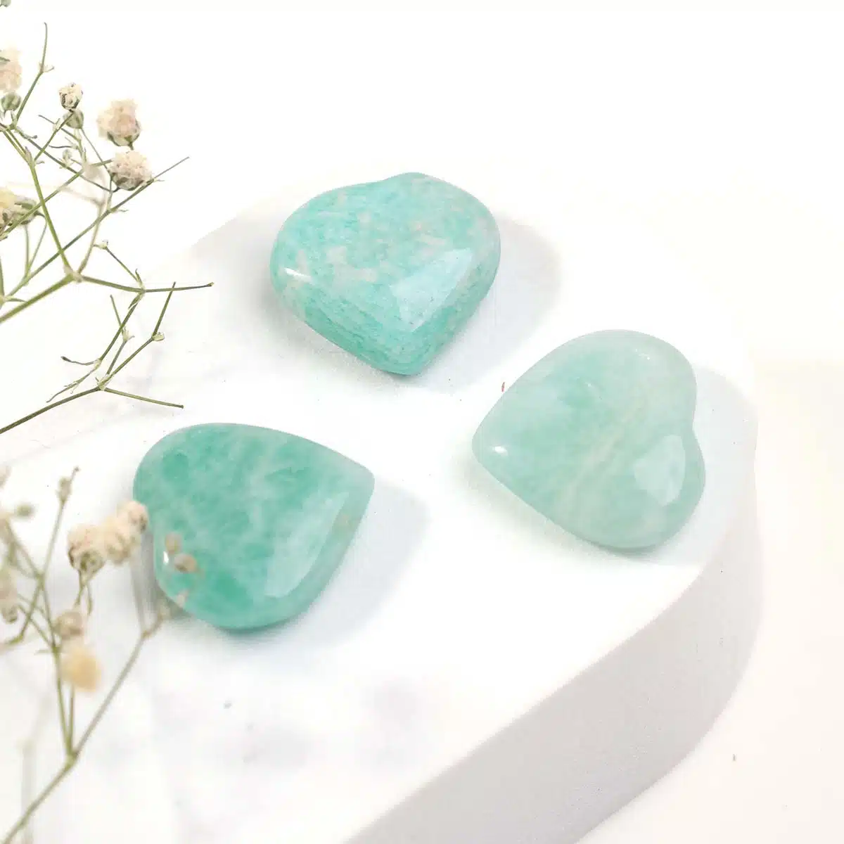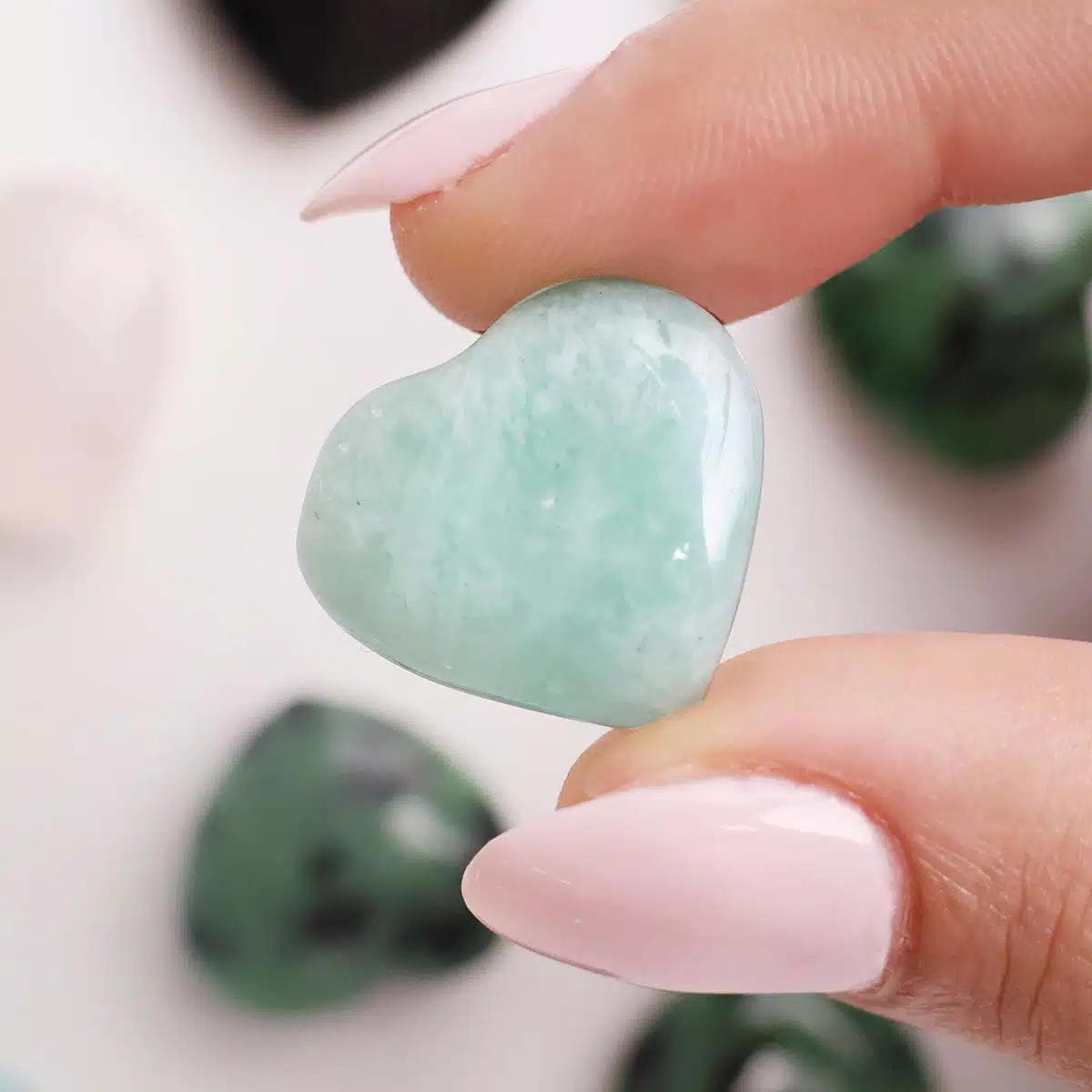 These cute crystal hearts are available in the following stones: Amazonite is among the ancient stones symbolizing calmness, truth, creativity, harmony, faith, optimism, and balance.