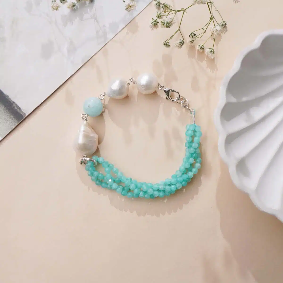- Together, Amazonite and Mother of Pearl create a bracelet that radiates serenity, harmony, and timeless grace.