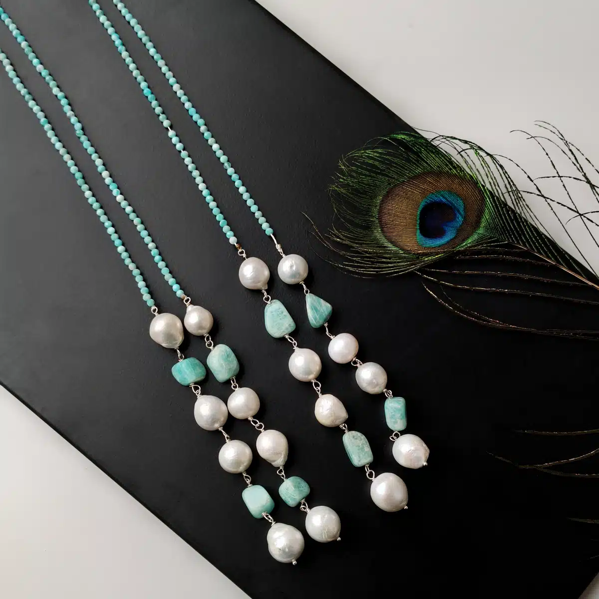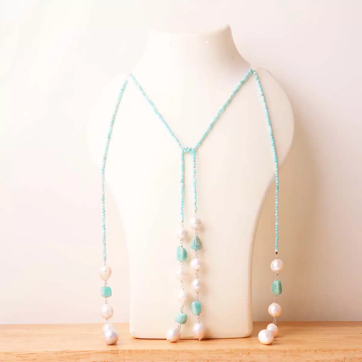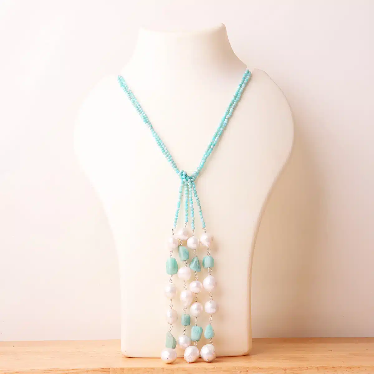 Benefits of Amazonite With Pearl Silver Long Knotted Necklace :