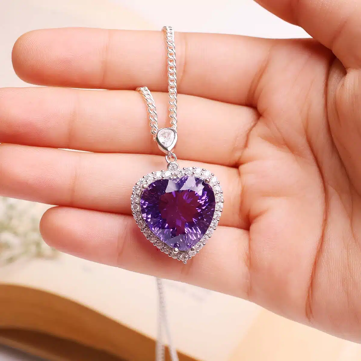 Natural Amethyst Crystal Heart Size: L-2.4 x W- 1.5 x H- 3.5 cm, 8.92gm (Approx)