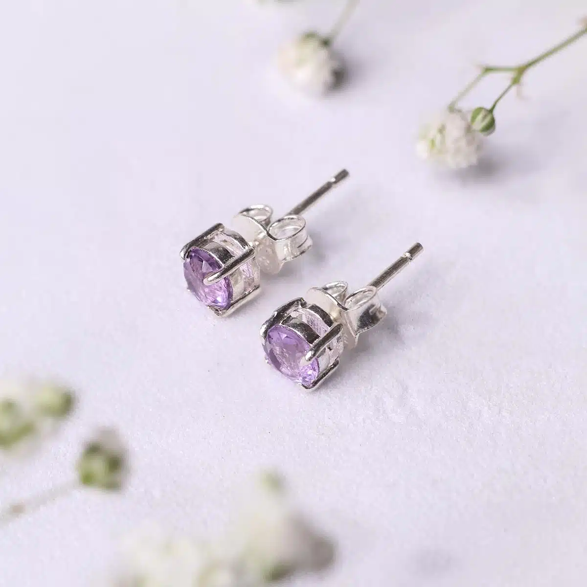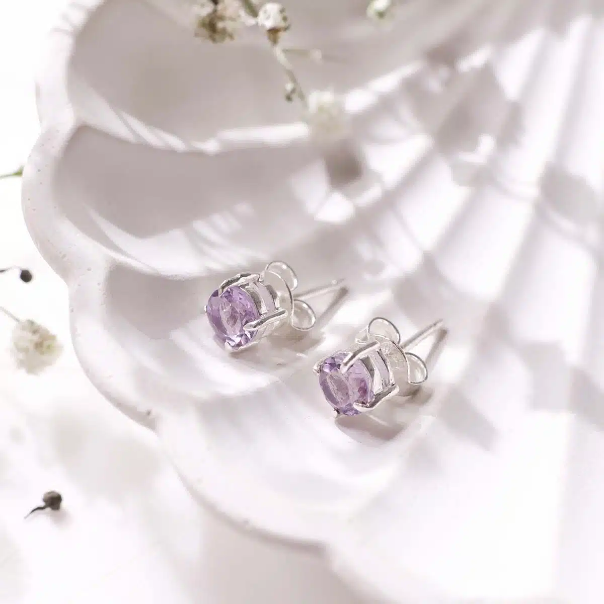 The Amethyst Round Stud Earring Silver blends timeless elegance with the serene energy of natural Amethyst. Set in high-quality silver, these round-cut studs radiate peaceful vibrations that soothe the mind, enhance intuition, and support emotional clarity.