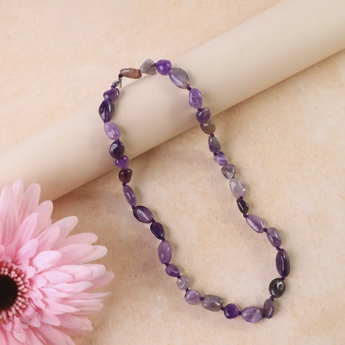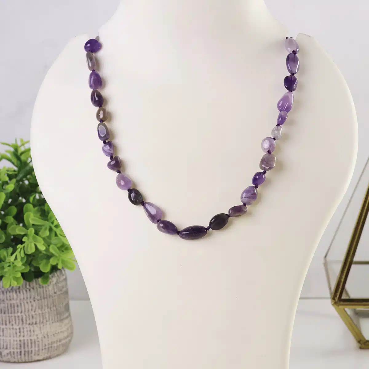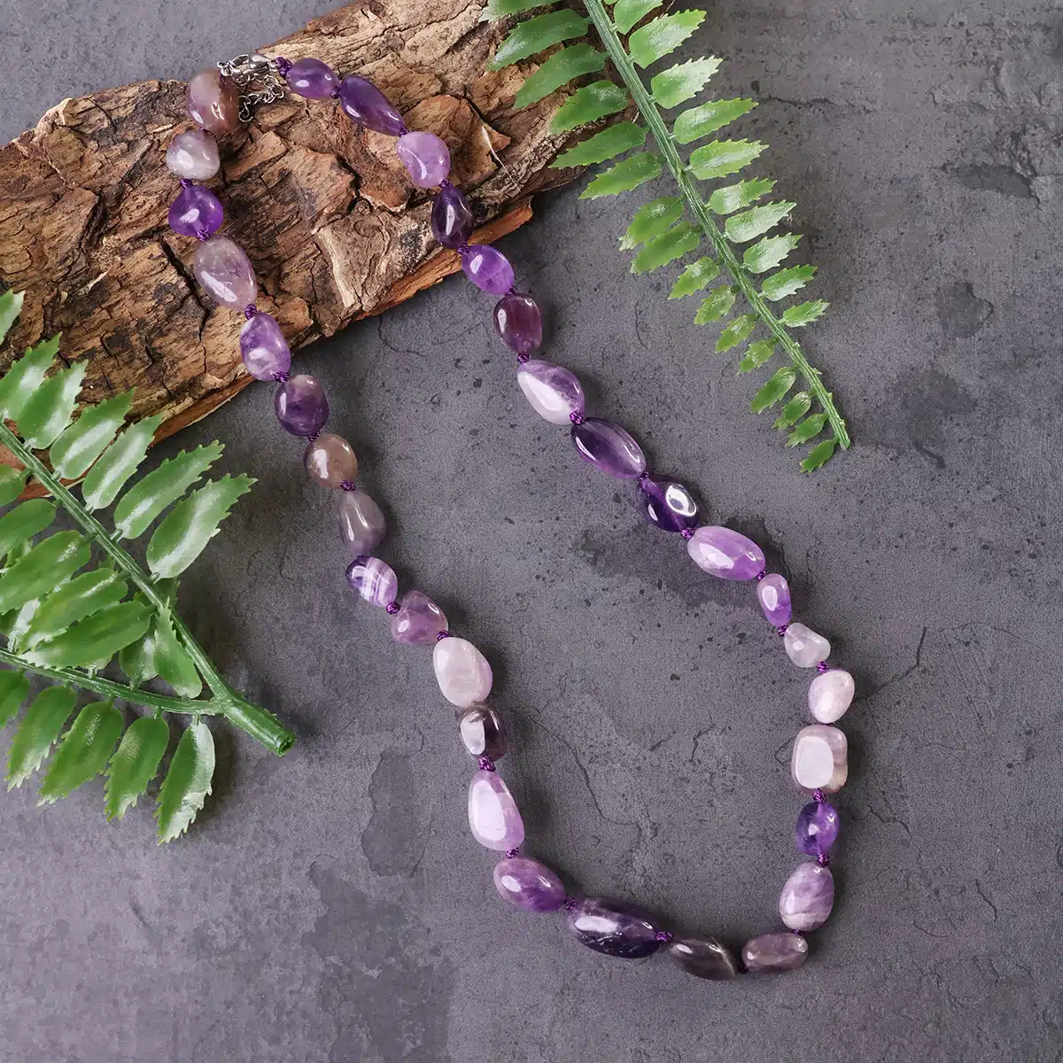 - The Amethyst Tumble Necklace helps deepen meditation and intuition.