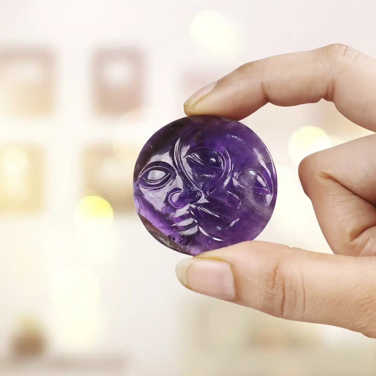 Immerse yourself in the ethereal energy of the Amethyst Sun Moon and embark on a journey of spiritual connection and balance.