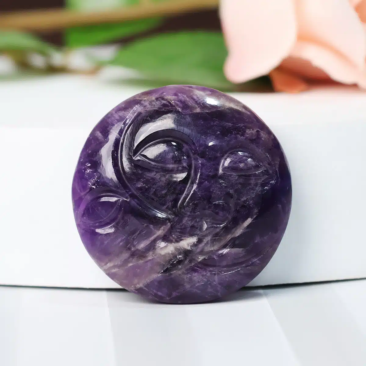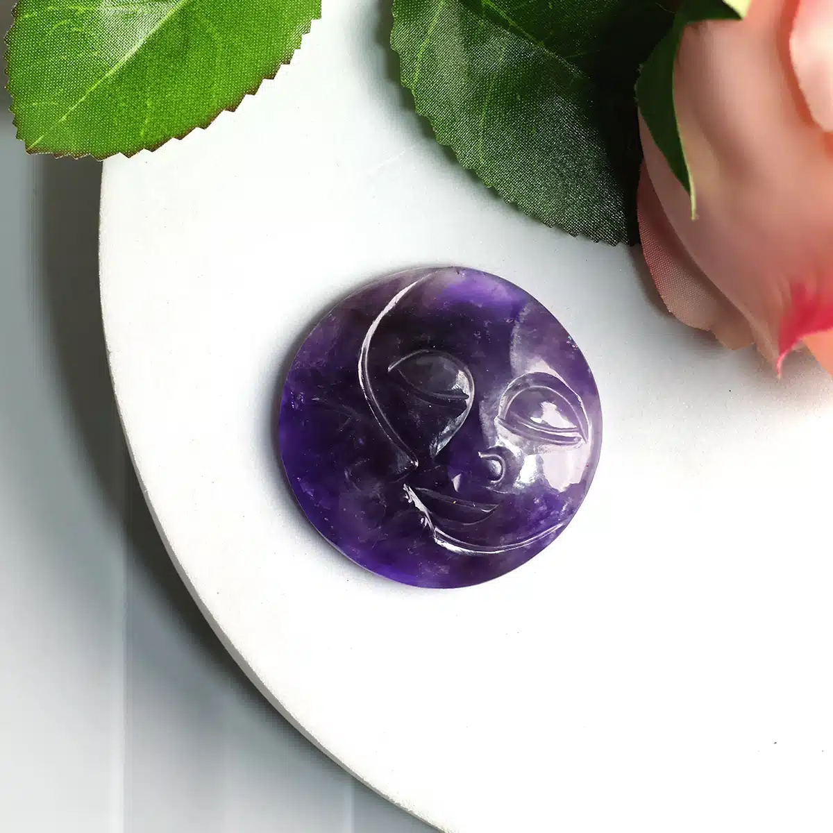 The Amethyst Sun Moon features a meticulously crafted design, where the sun and moon elements coalesce in perfect harmony. The sun represents vitality, energy, and enlightenment, while the moon symbolizes intuition, introspection, and the ebb and flow of life’s cycles. Together, they embody the balance of opposing forces, creating a harmonious and captivating piece.