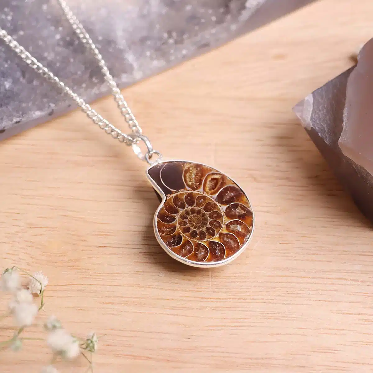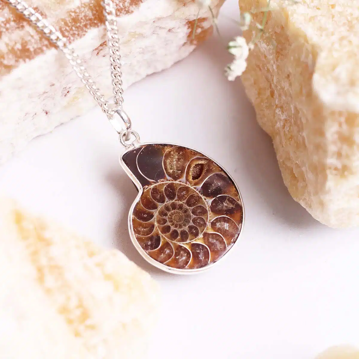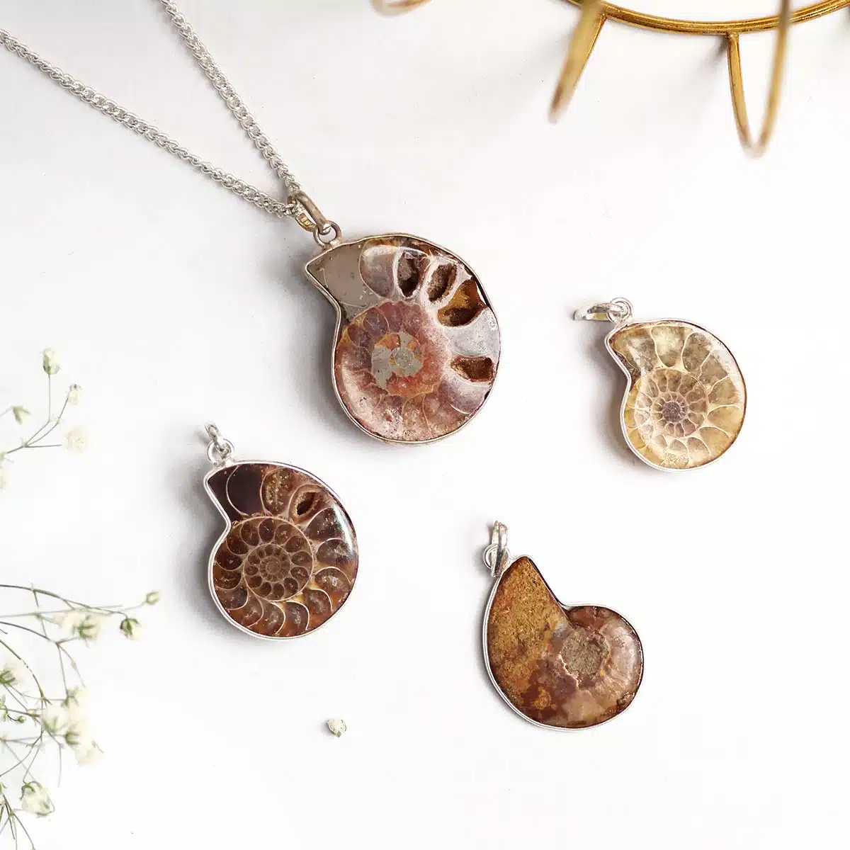 These Ammonite pendants are an absolute statement piece meant to turn heads and start conversations. What sets apart this fossil from others is the attention to detail; the exquisite silver trim along the edge and polished surface.