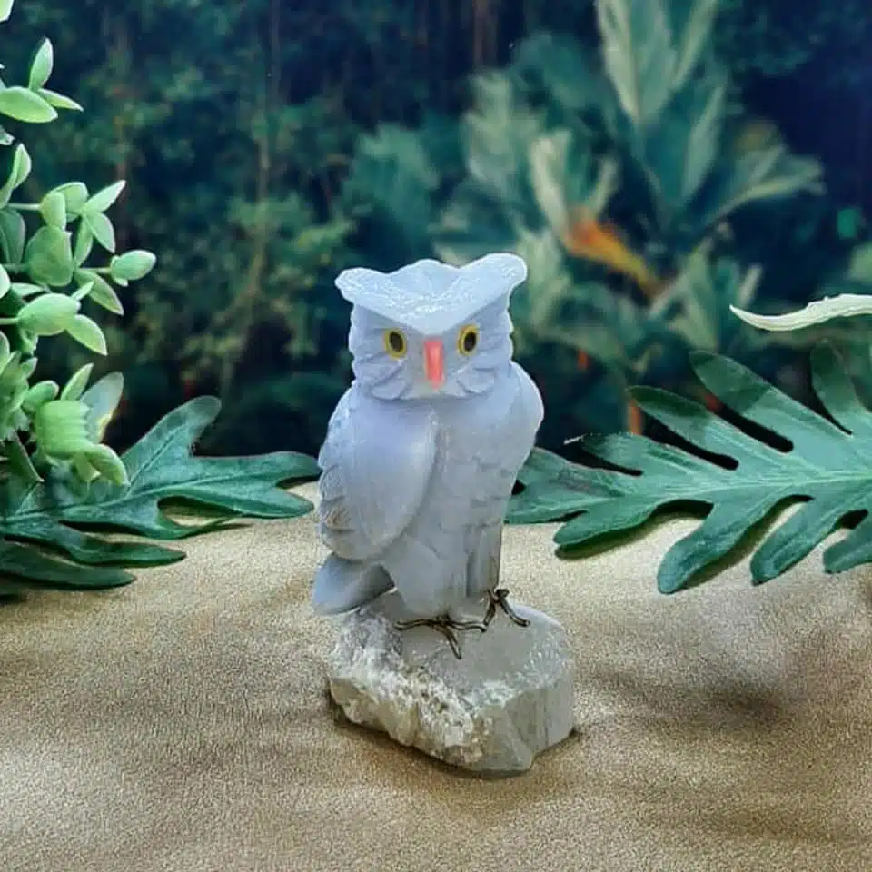 Birds are universal symbols of freedom, ascension, and spiritual transcendence. Represent a bridge between the earthly and the spiritual realms. Bring a sense of lightness, clarity, and perspective, encouraging you to rise above challenges. Symbolize messages from the divine—especially when paired with Angelite.