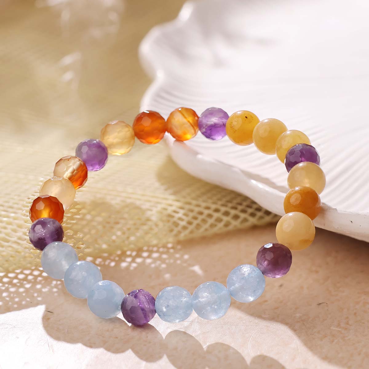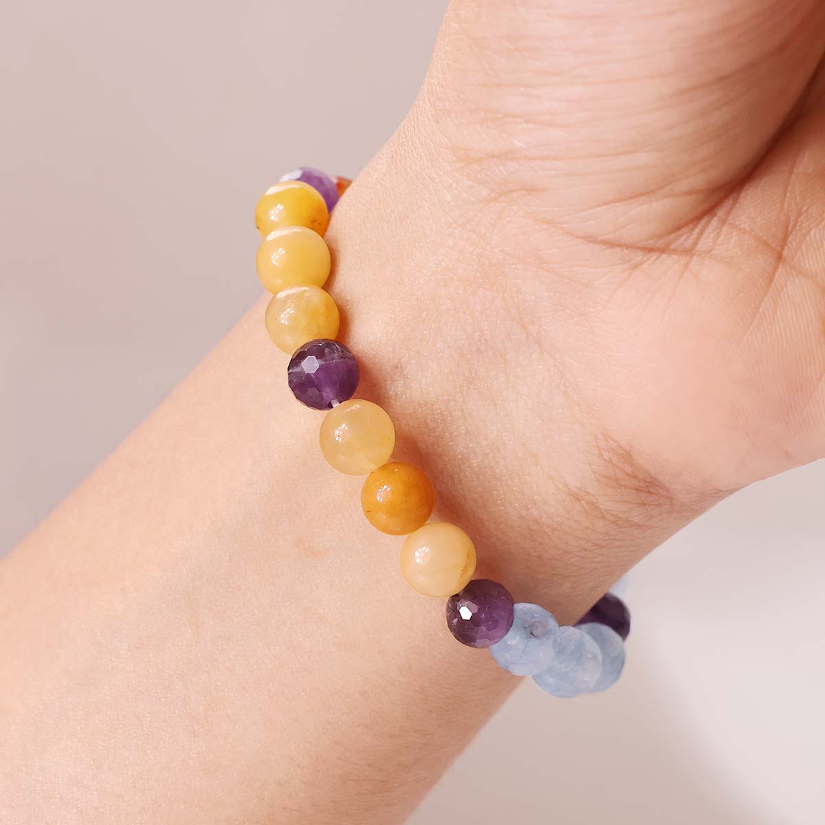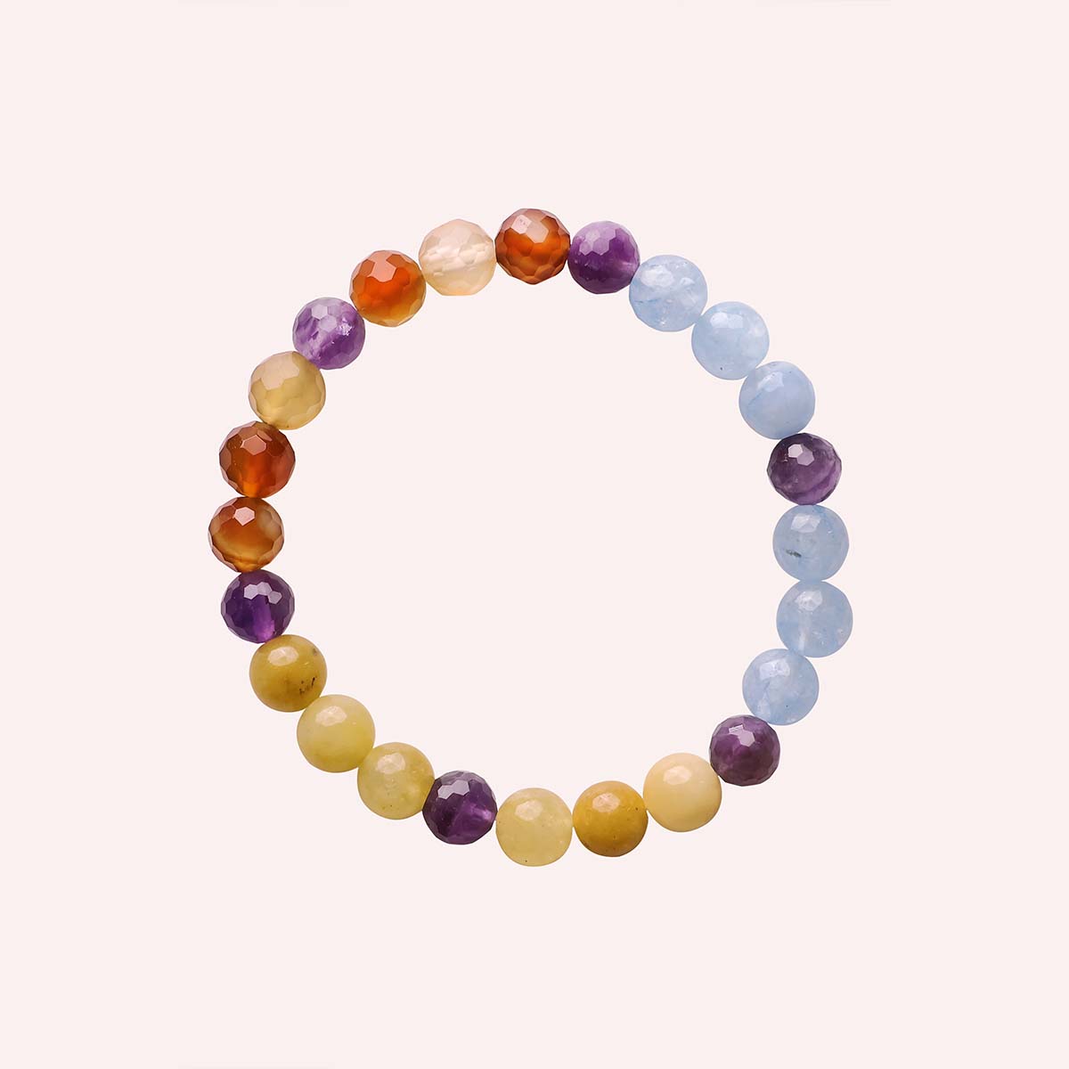 Natural Stone | Round & Faceted Beads | Handmade Elastic Bracelet.
