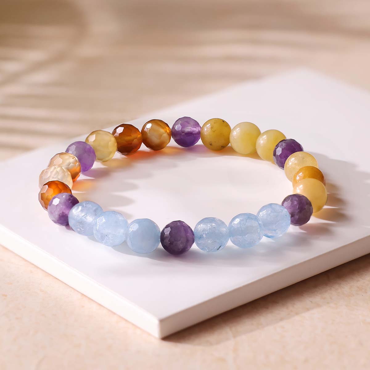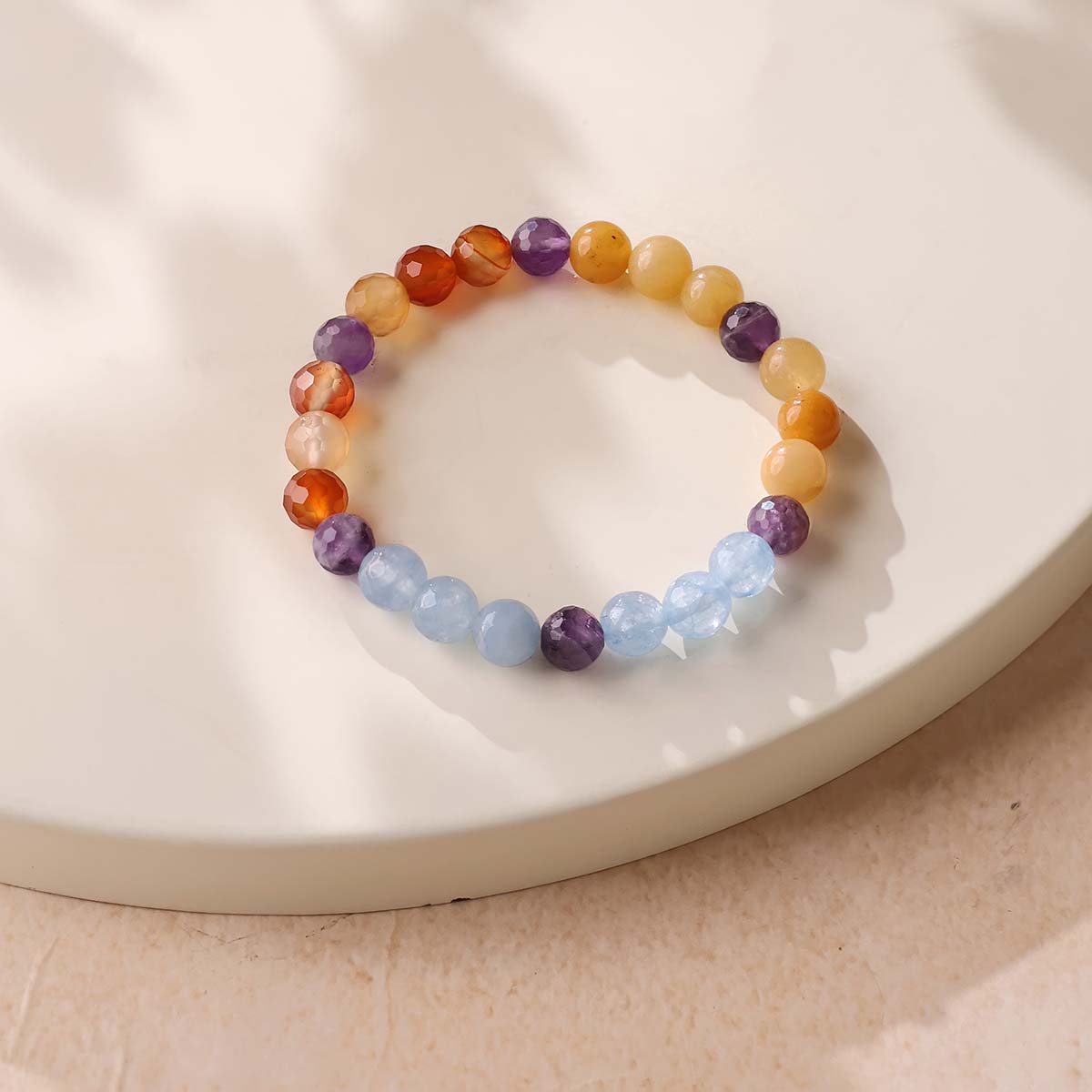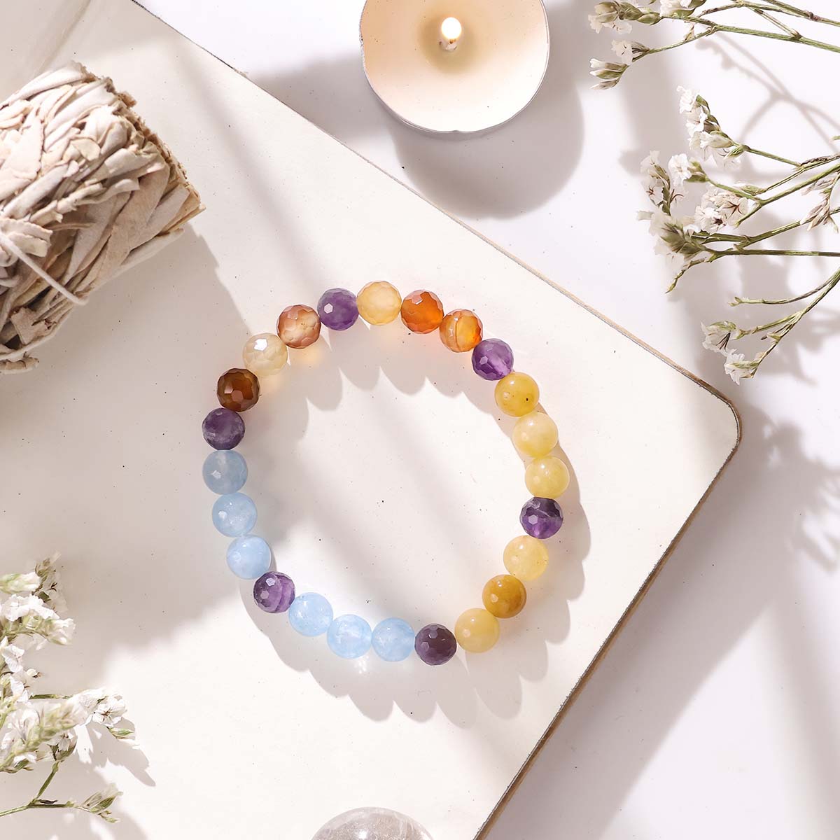 Natural Stone | Round & Faceted Beads | Handmade Elastic Bracelet.
