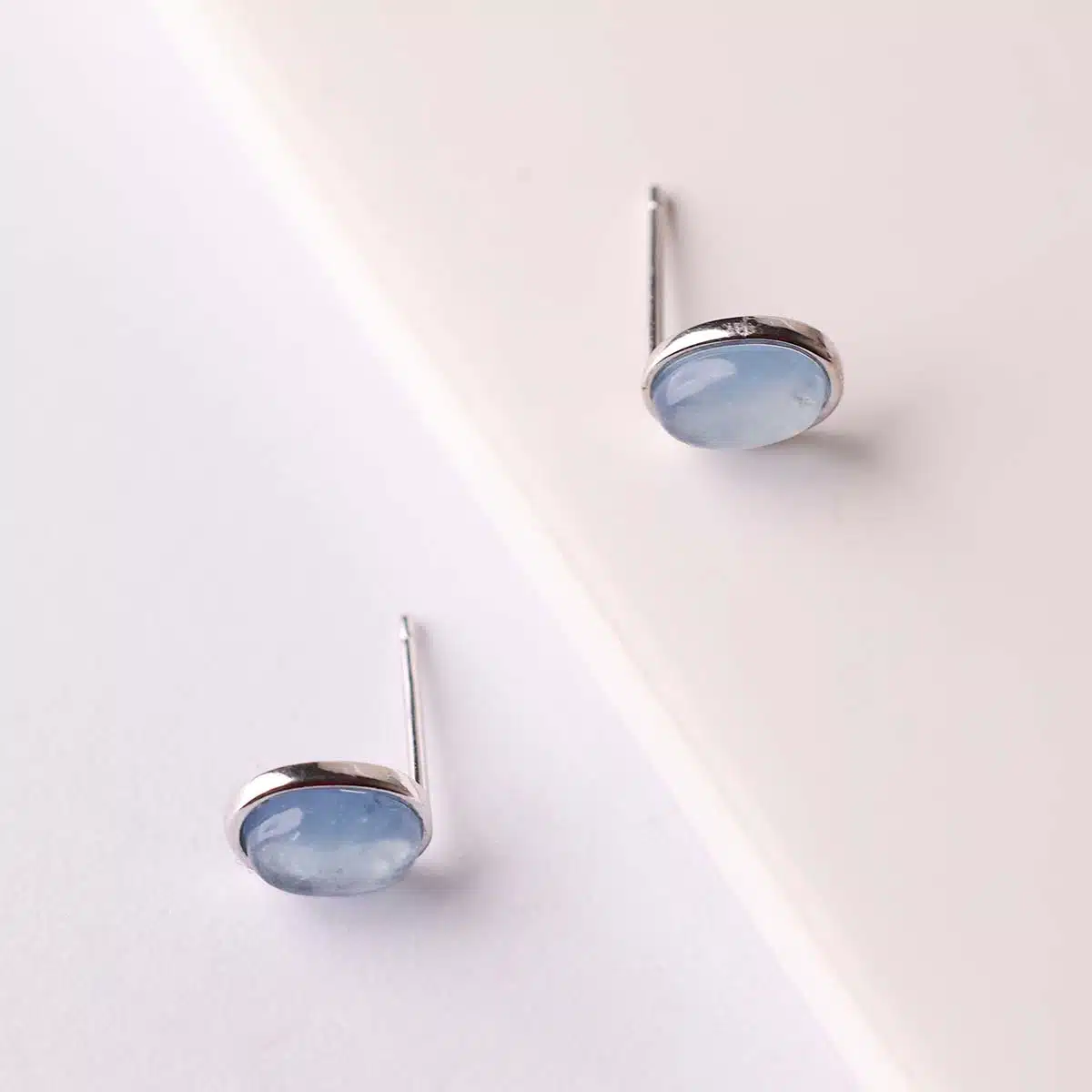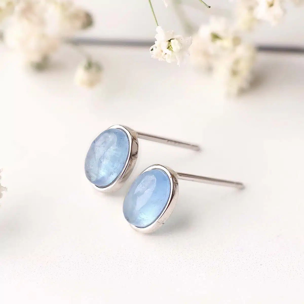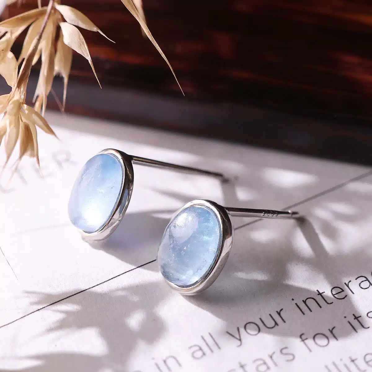 You will receive one pair of natural Aquamarine Silver Earrings similar to the ones shown. Each piece is unique, with natural variations in color, size, and stone pattern.