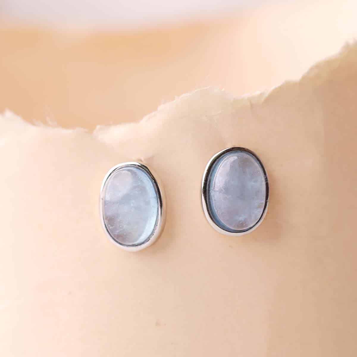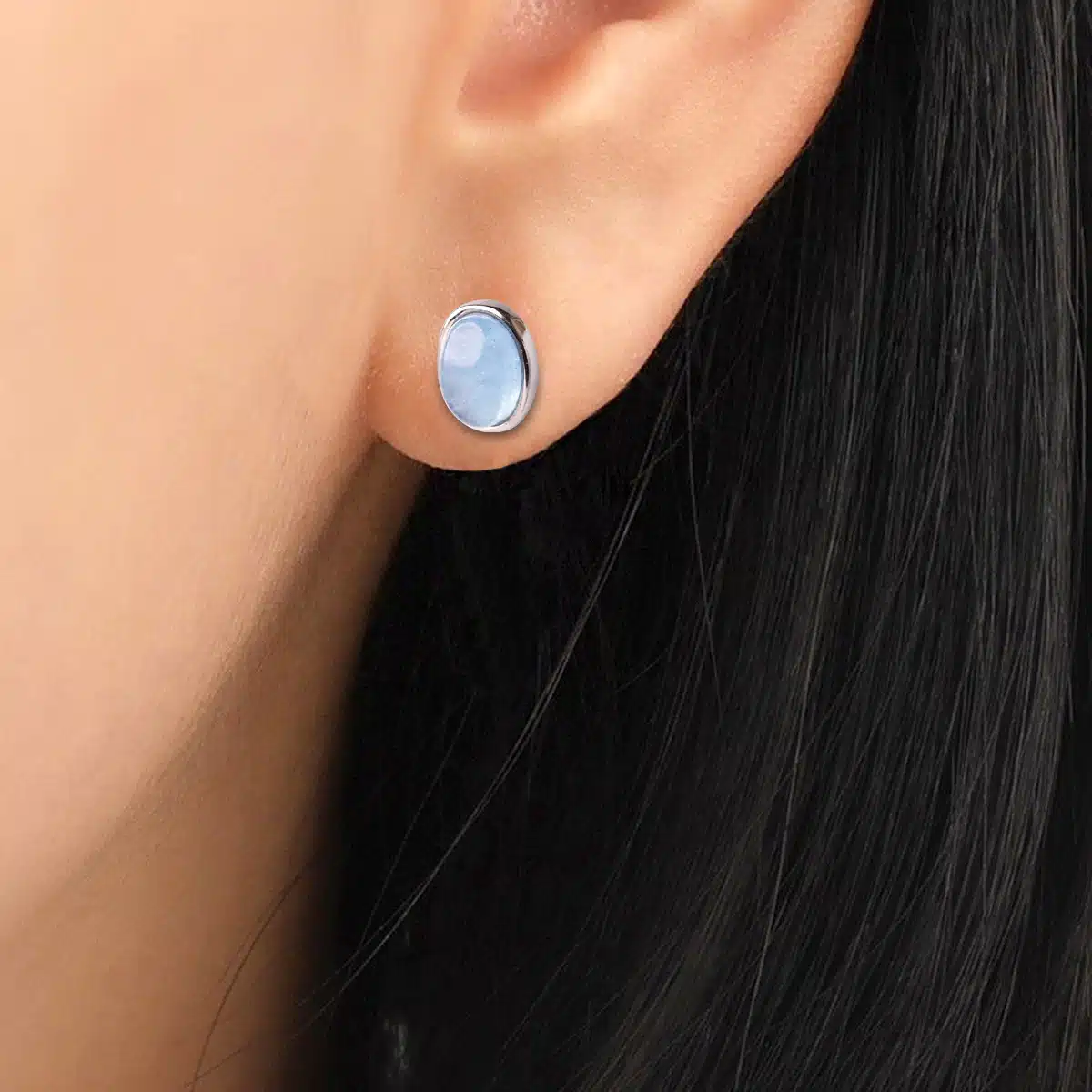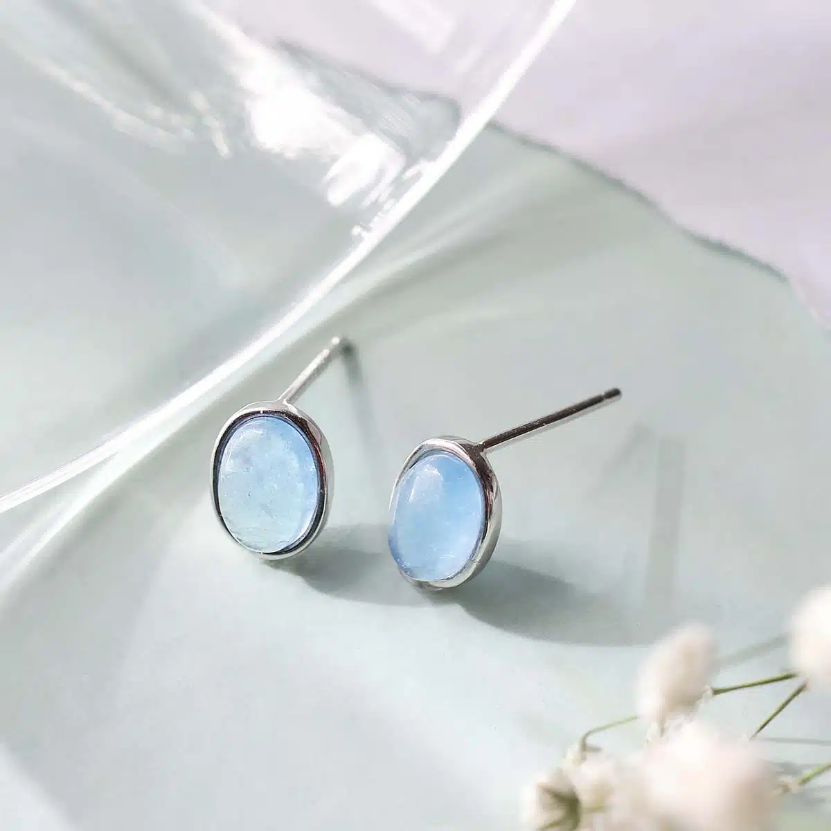 You will receive one pair of natural Aquamarine Silver Earrings similar to the ones shown. Each piece is unique, with natural variations in color, size, and stone pattern.