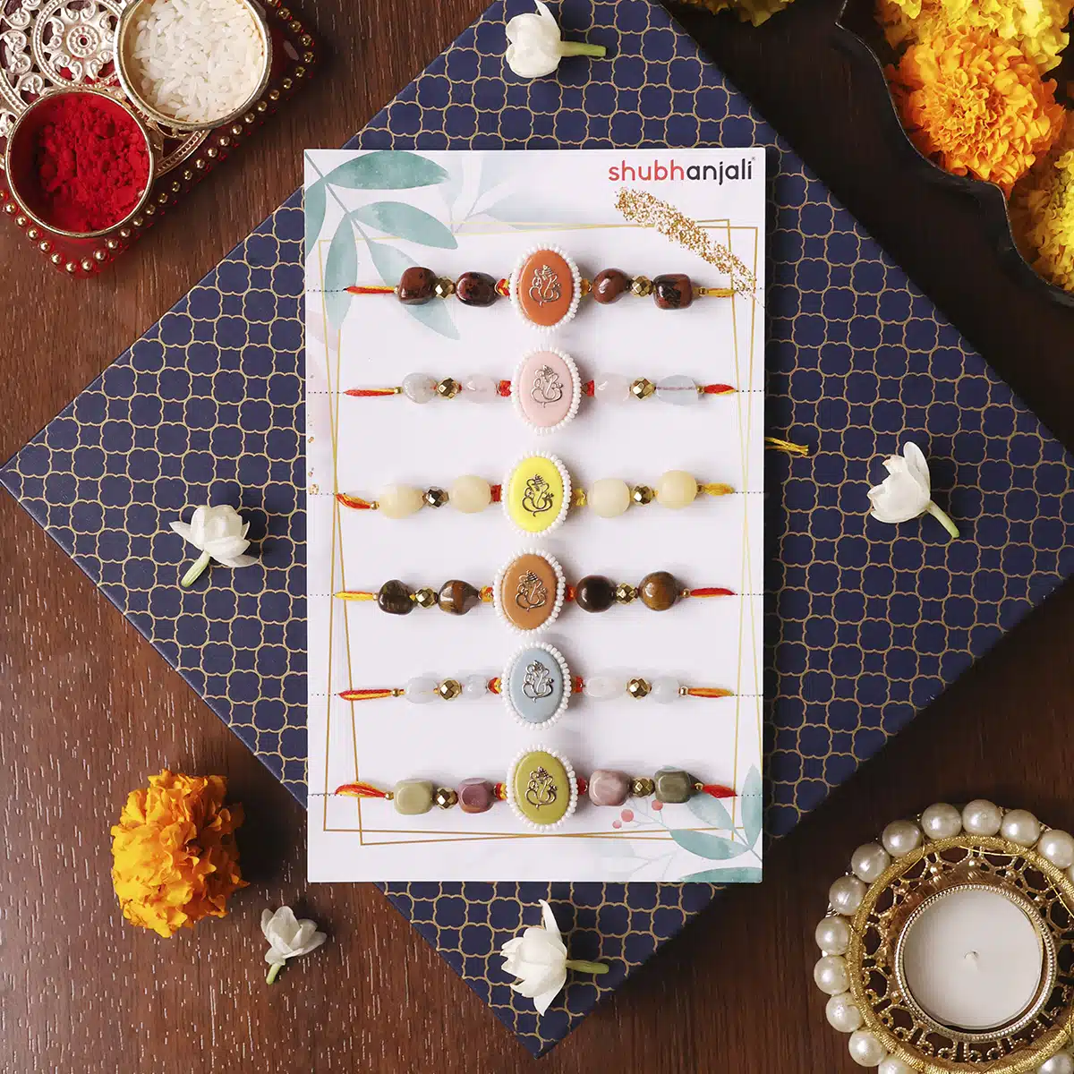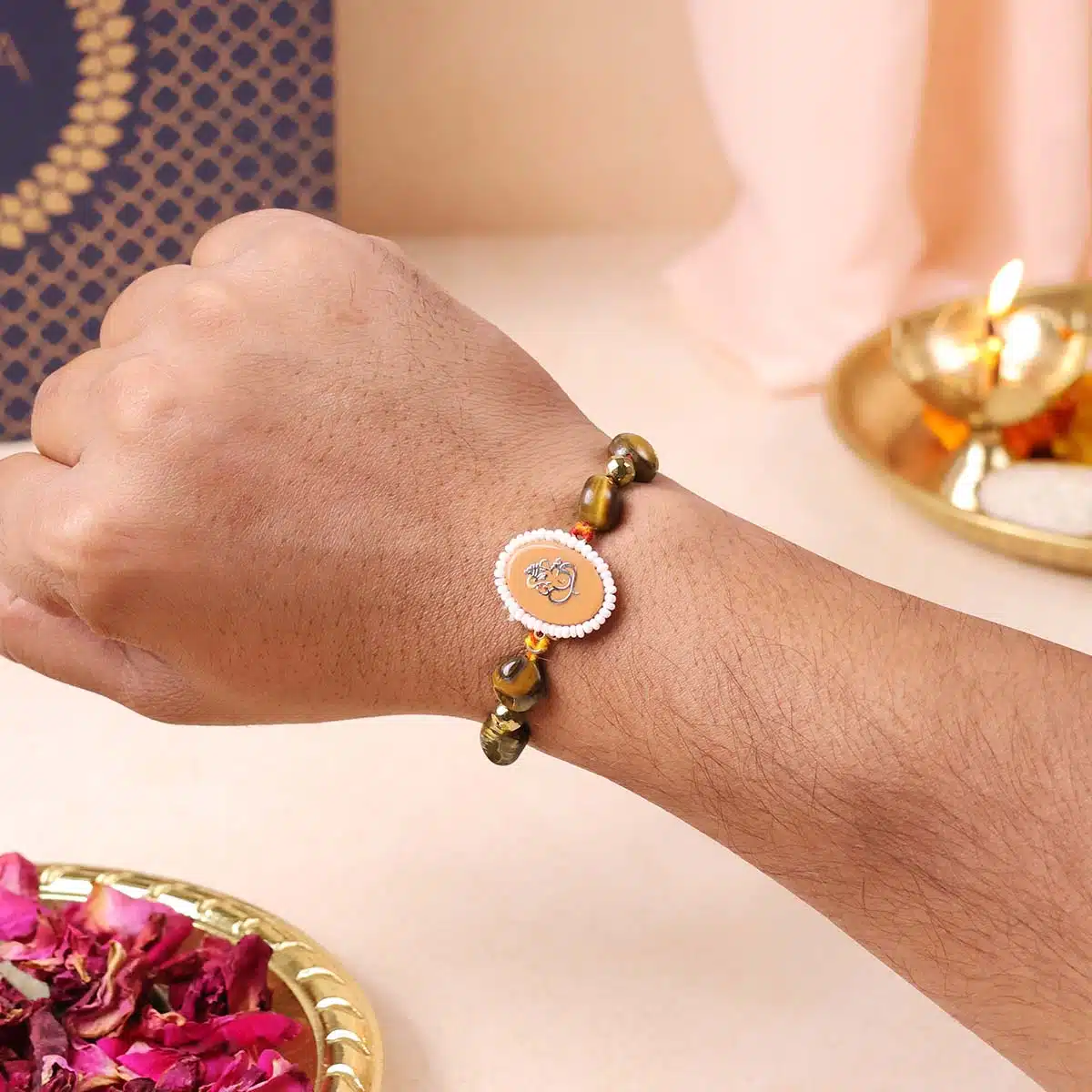 Oval Ganesha Charm – Symbolizes wisdom, new beginnings, and protection. Ganesha’s presence blesses your brother with spiritual guidance and removes obstacles from his path.