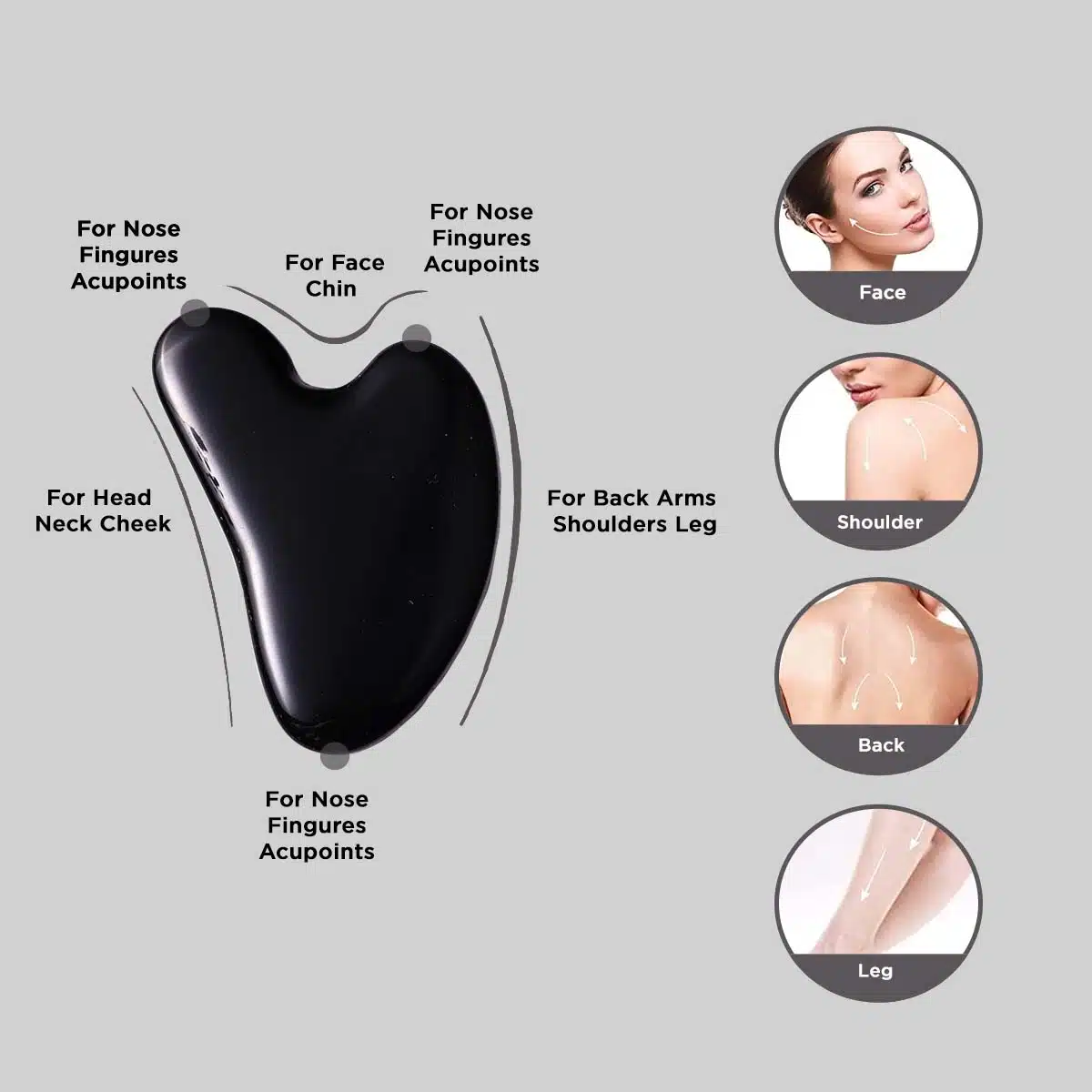 - Use:-1)Apply moisturizing skincare product/beauty products, such as Nourish or Glow Facial Oil, to penetrate deeper into the skin for better absorption.2)Gently scrape in an upward and outward motion starting from the neck and moving up along your chin, cheeks, and forehead. Delicately massage the under-eye area with one of the smaller sides. Go over each side of the face separately, repeat each section 2-3 times for the best results.Use regularly for additional benefits.