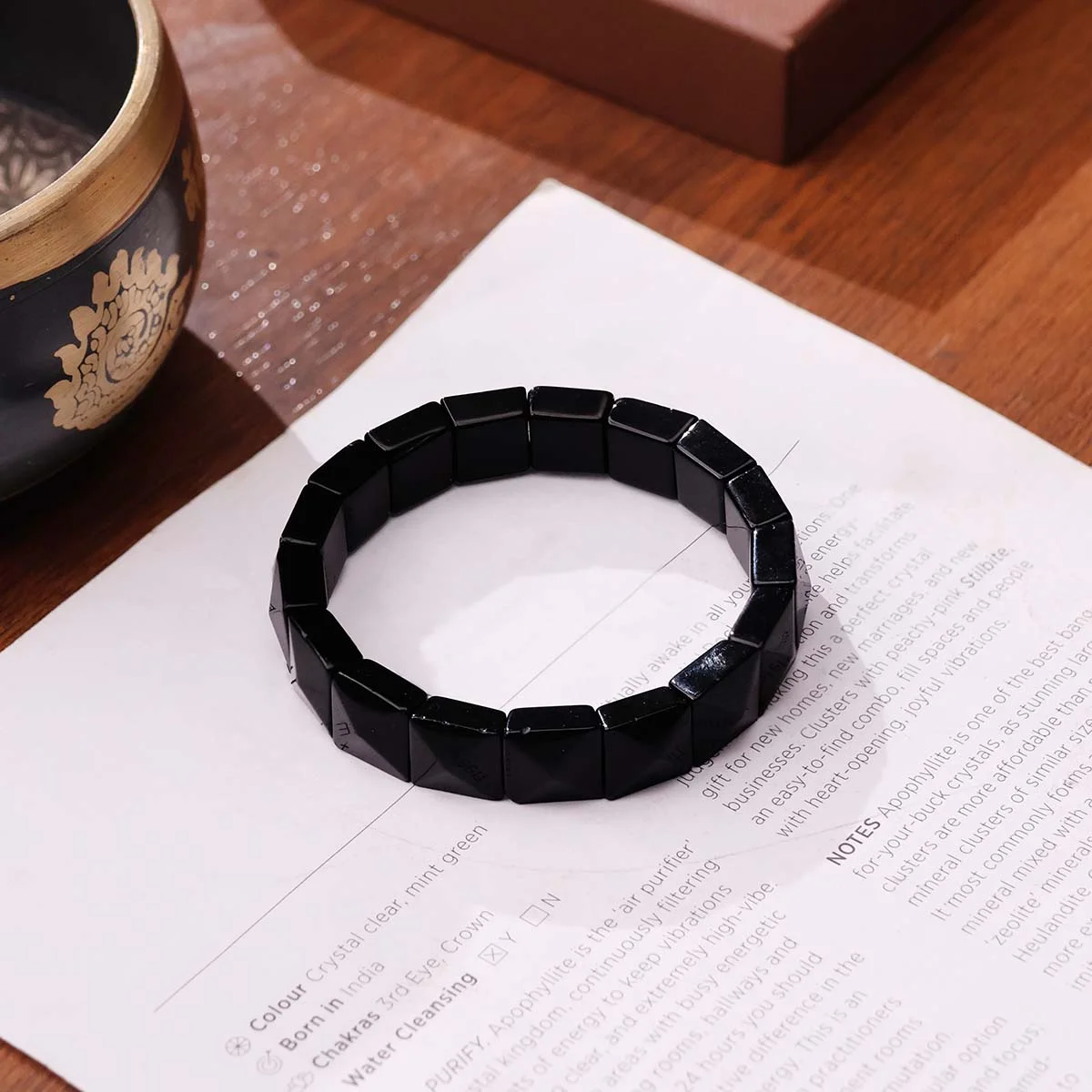 • The pyramid-shaped beads are believed to amplify energy, focus intentions, and enhance protection and grounding properties. This bracelet can be worn daily for protection, grounding, confidence, and emotional balance.