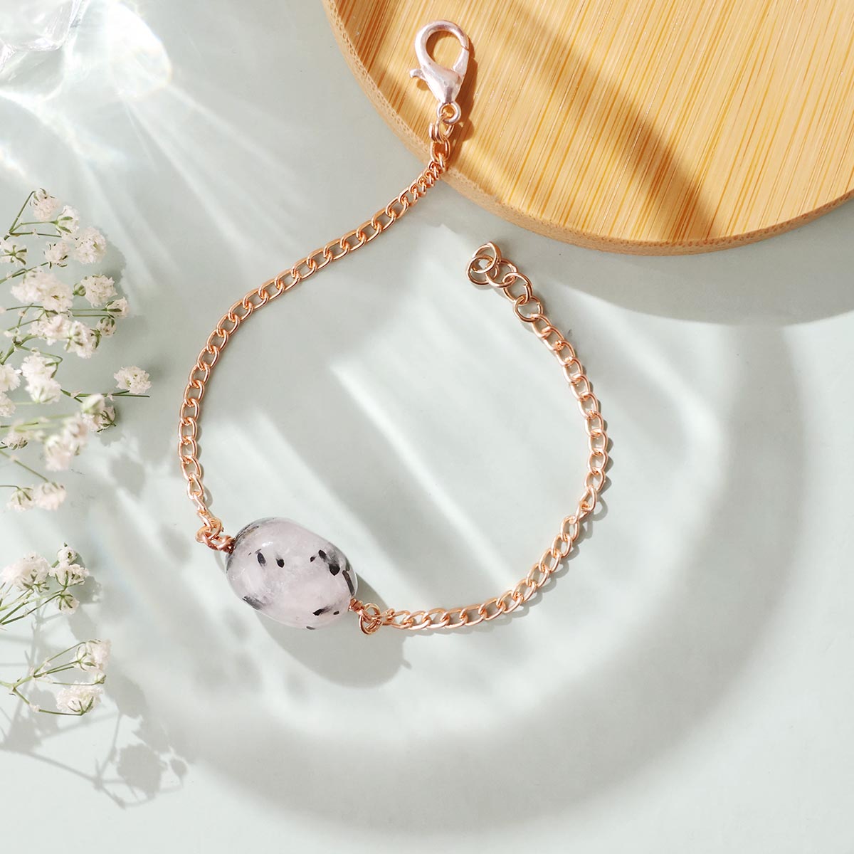 You will receive one bracelet similar to the one shown. Each stone is natural and unique, so slight variations in color, rutile inclusions, tumble shape, and patterns may occur. Images represent typical quality.
