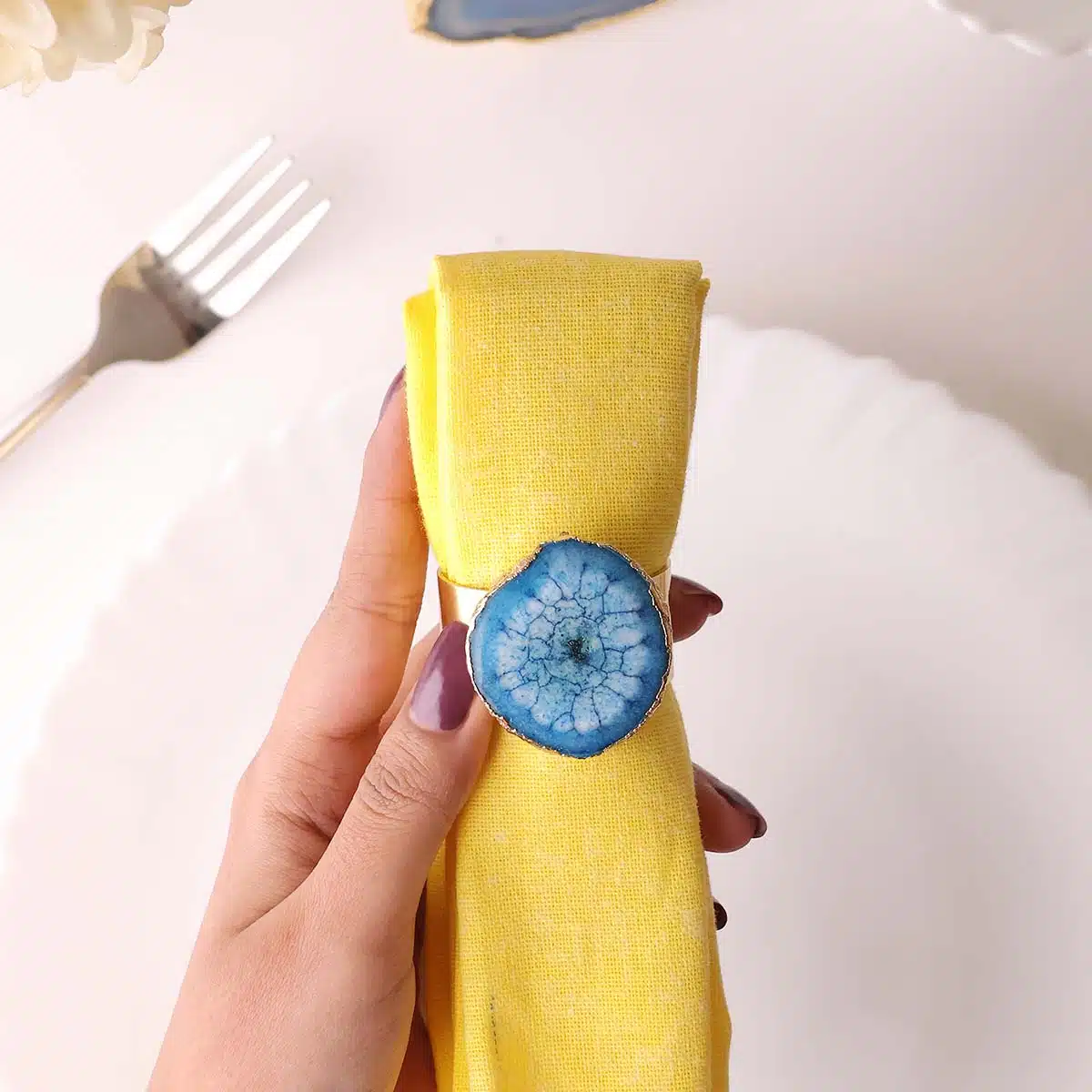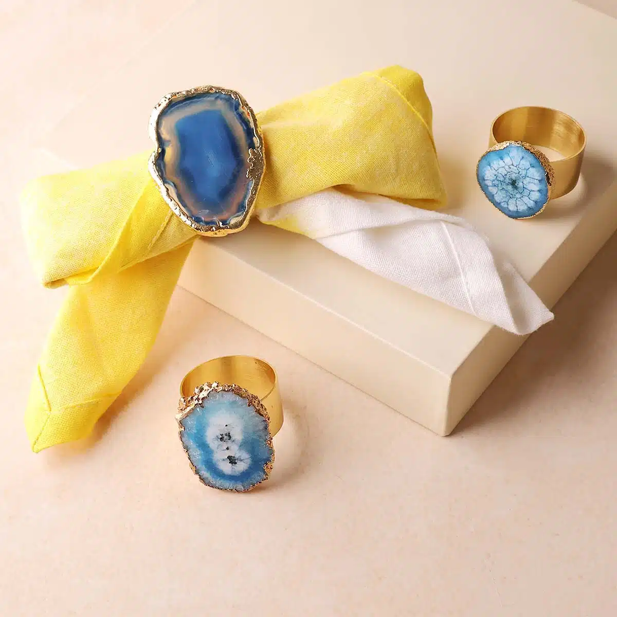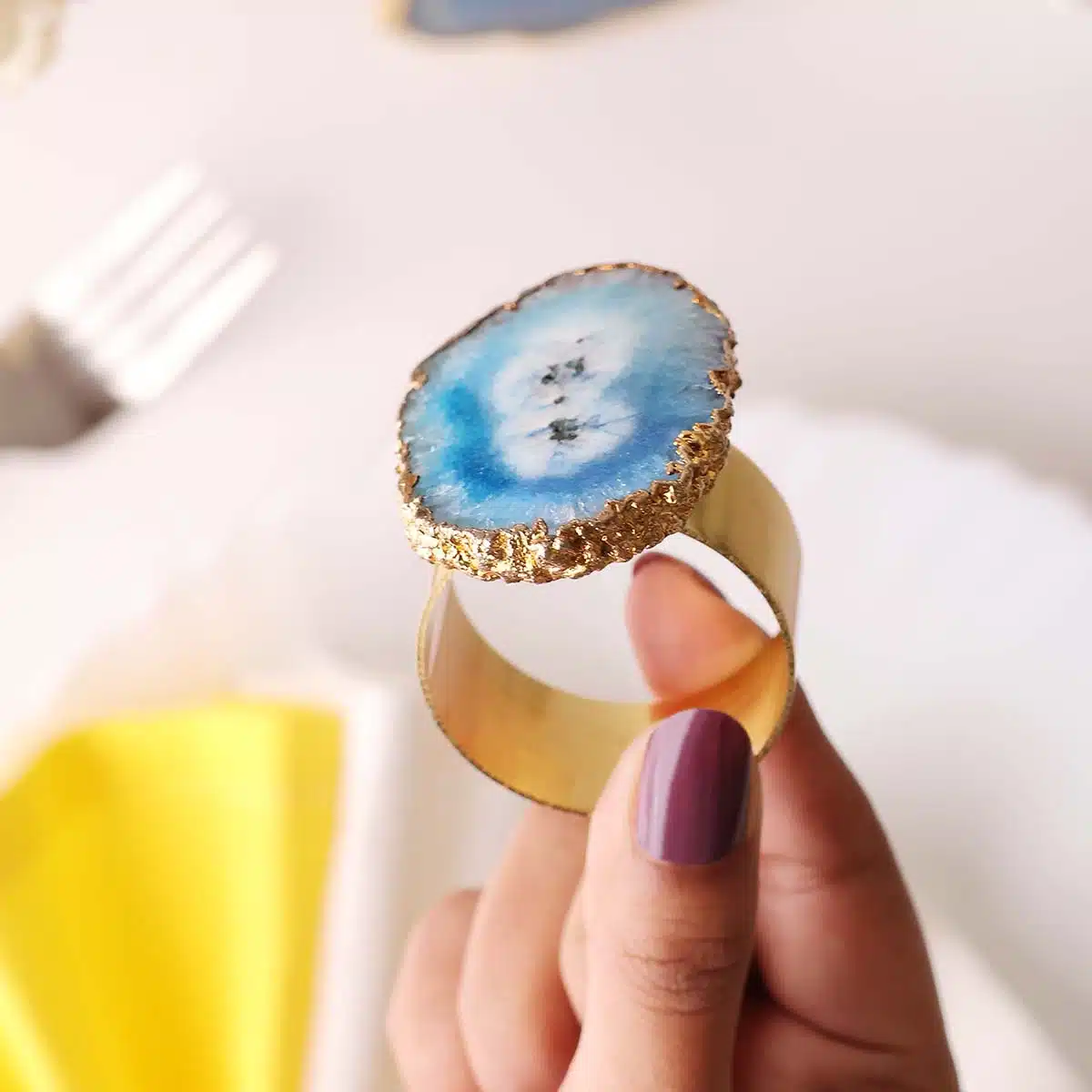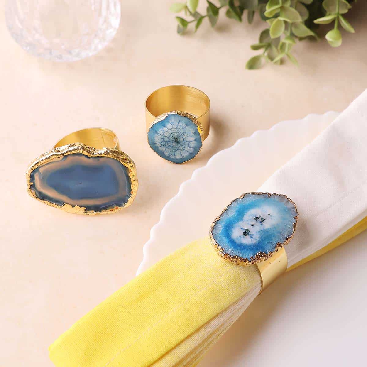 - Enhances table decor with the natural beauty and vibrant patterns of blue agate, adding a refined and luxurious touch.
