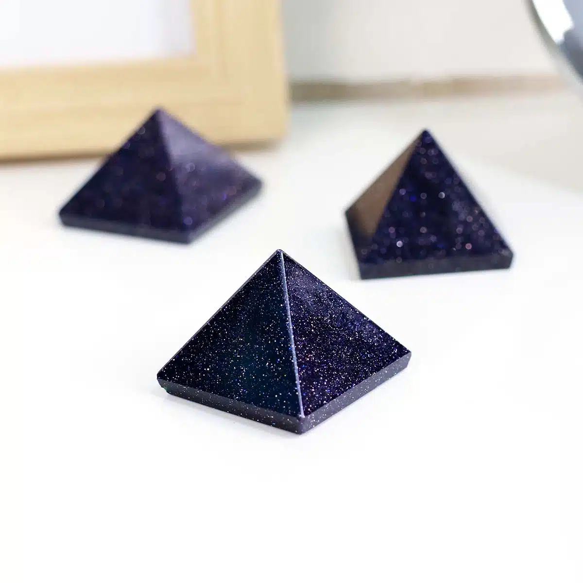 - Blue goldstone transmits healing energy, increases self-acceptance, aids in learning and soothes hypersensitivity.