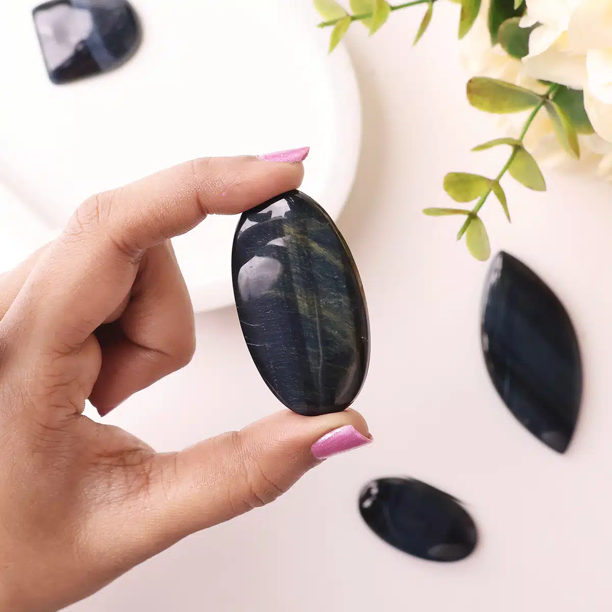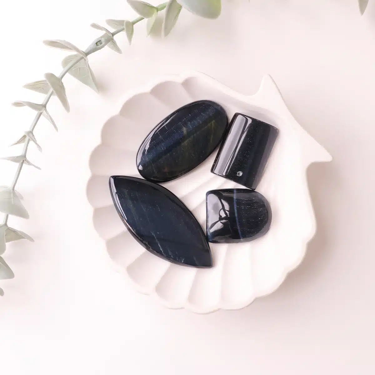 - Blue Tiger Eye exudes a soothing energy that helps calm overactive thoughts, reduce anxiety, and restore emotional balance.