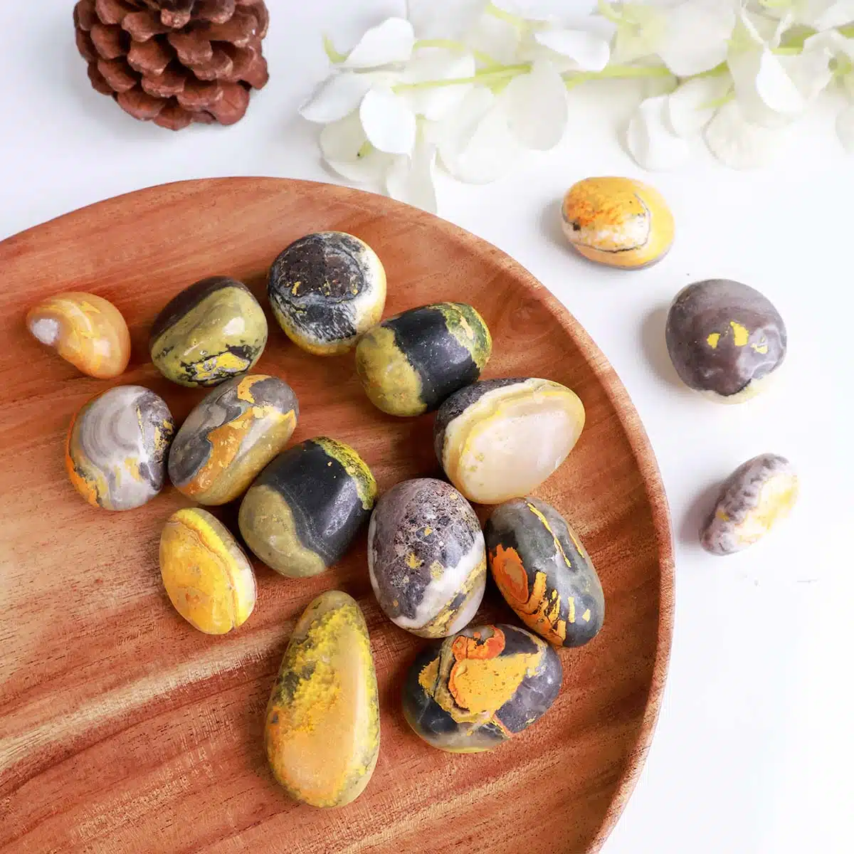 Tumble stones are a versatile shape that is all-purpose and radiates energy gently in vaeous directions. Bumble Bee Jasper is a metaphysical stone with a lot of potential and hidden powers. It gets its name from the appealing design on it, which is identical to the pattern found on bumblebees.