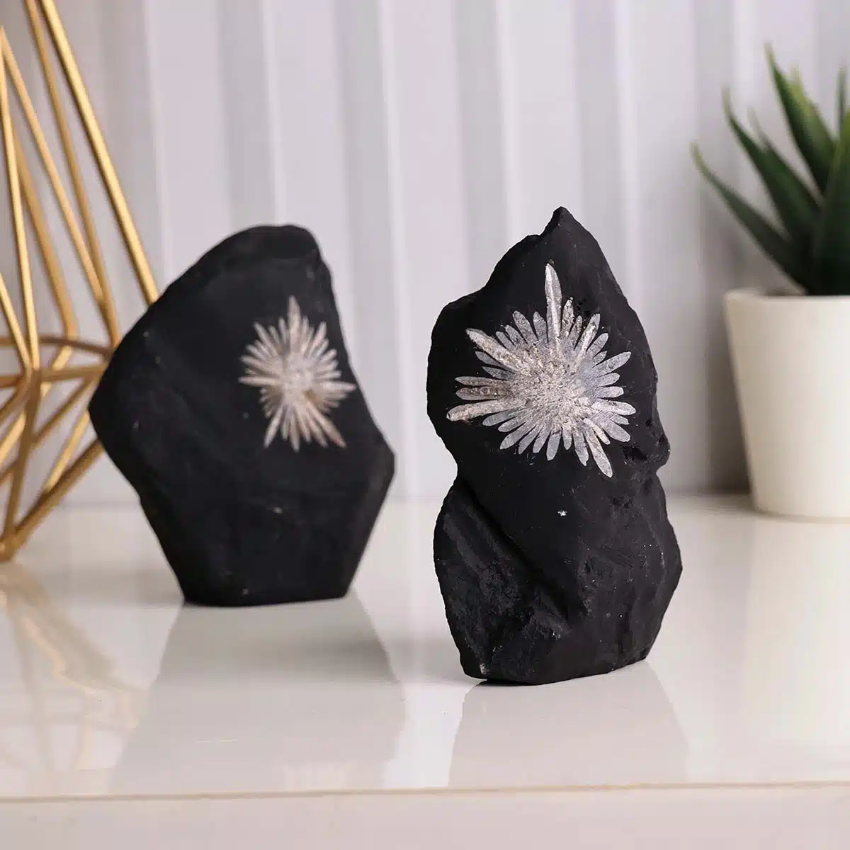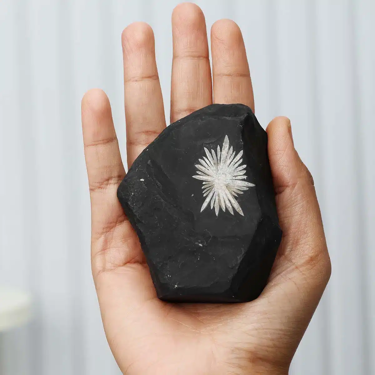 Chrysanthemum Stone, or Flower Stone, is a symbol of optimism and joy, named for its near-perfect representation of this cheerful flower, which is serendipitously found within the black stone.