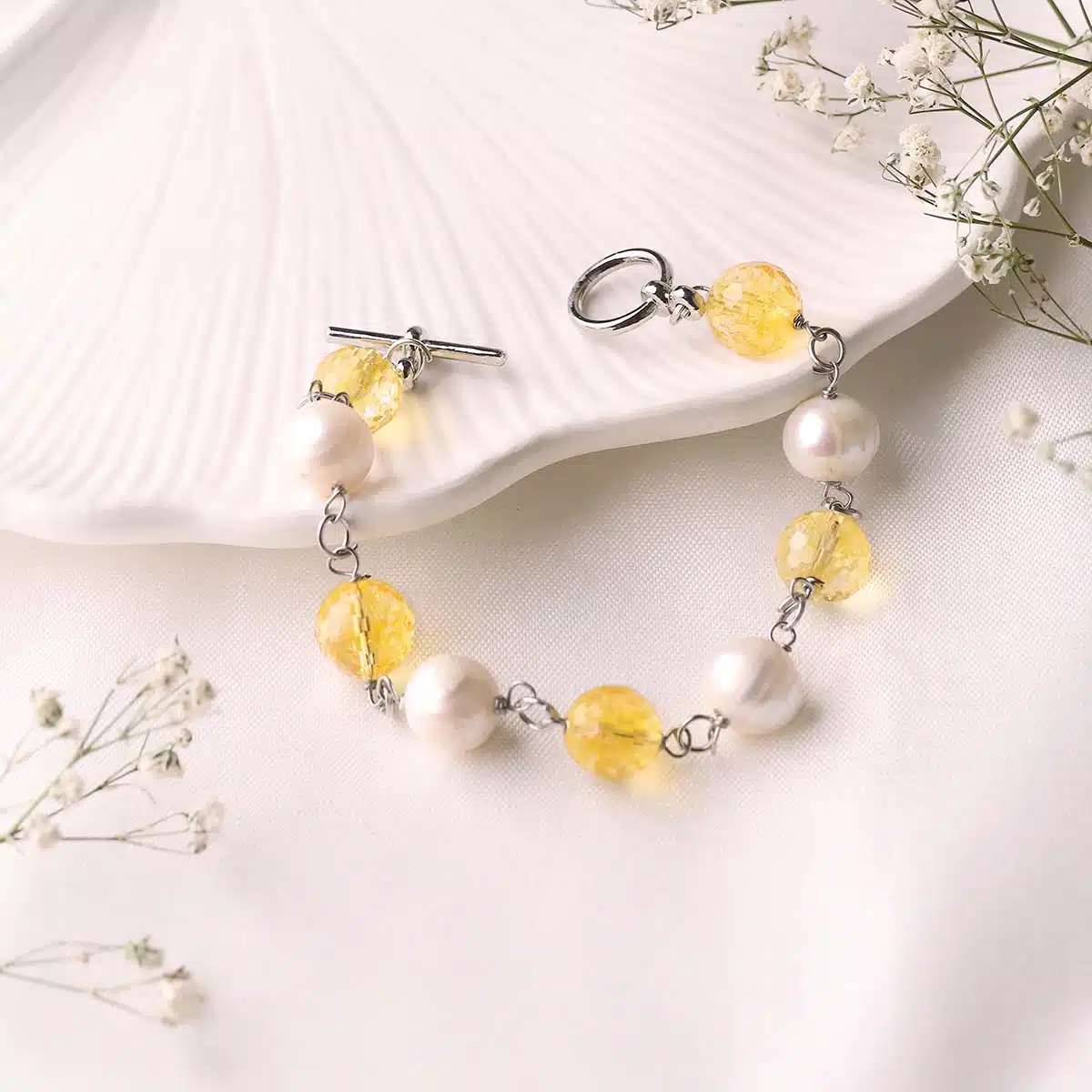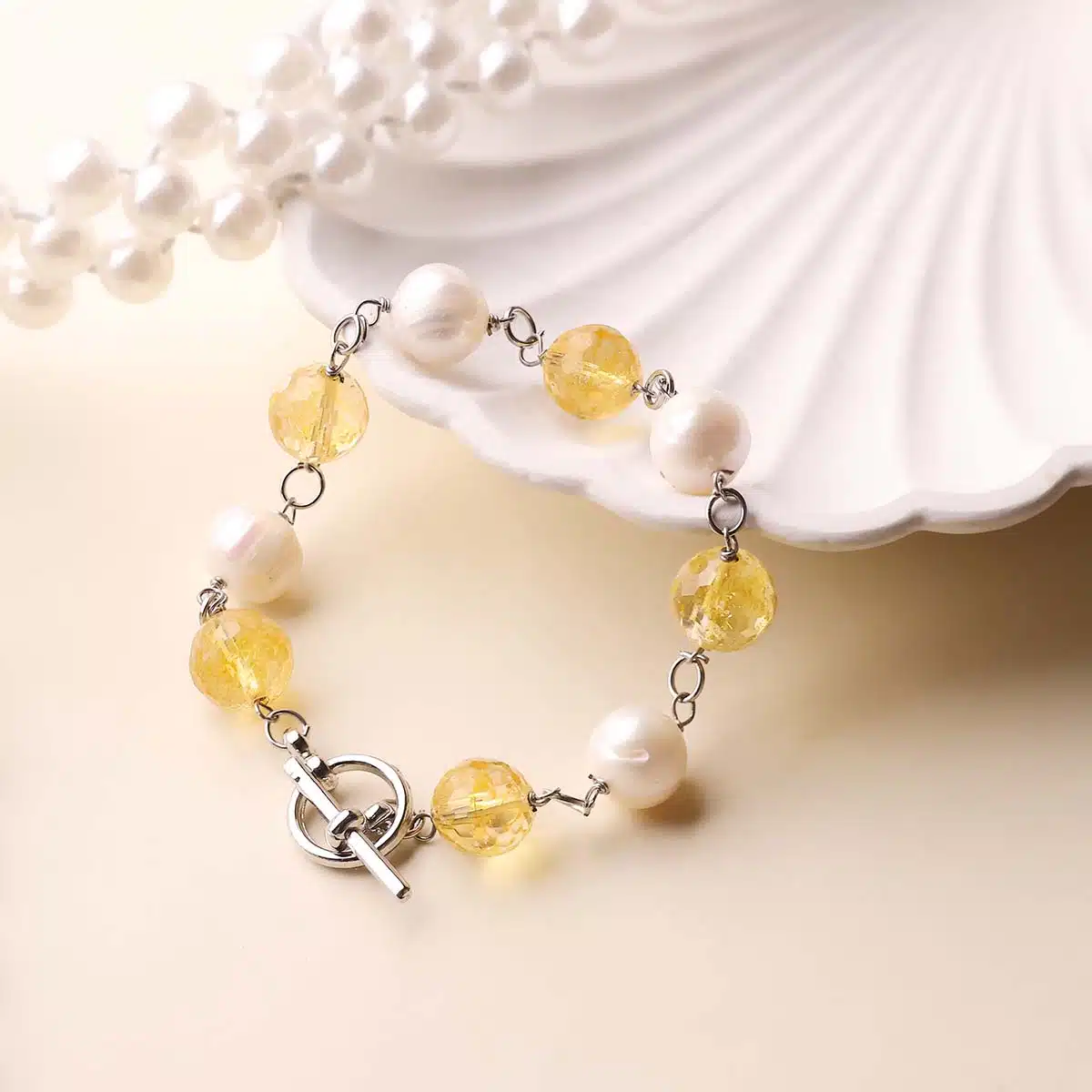 - Combines the positivity of Citrine with the elegance of Pearls.