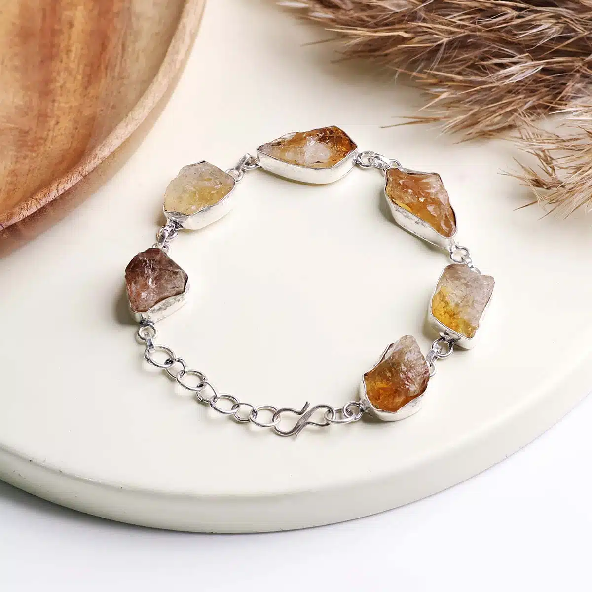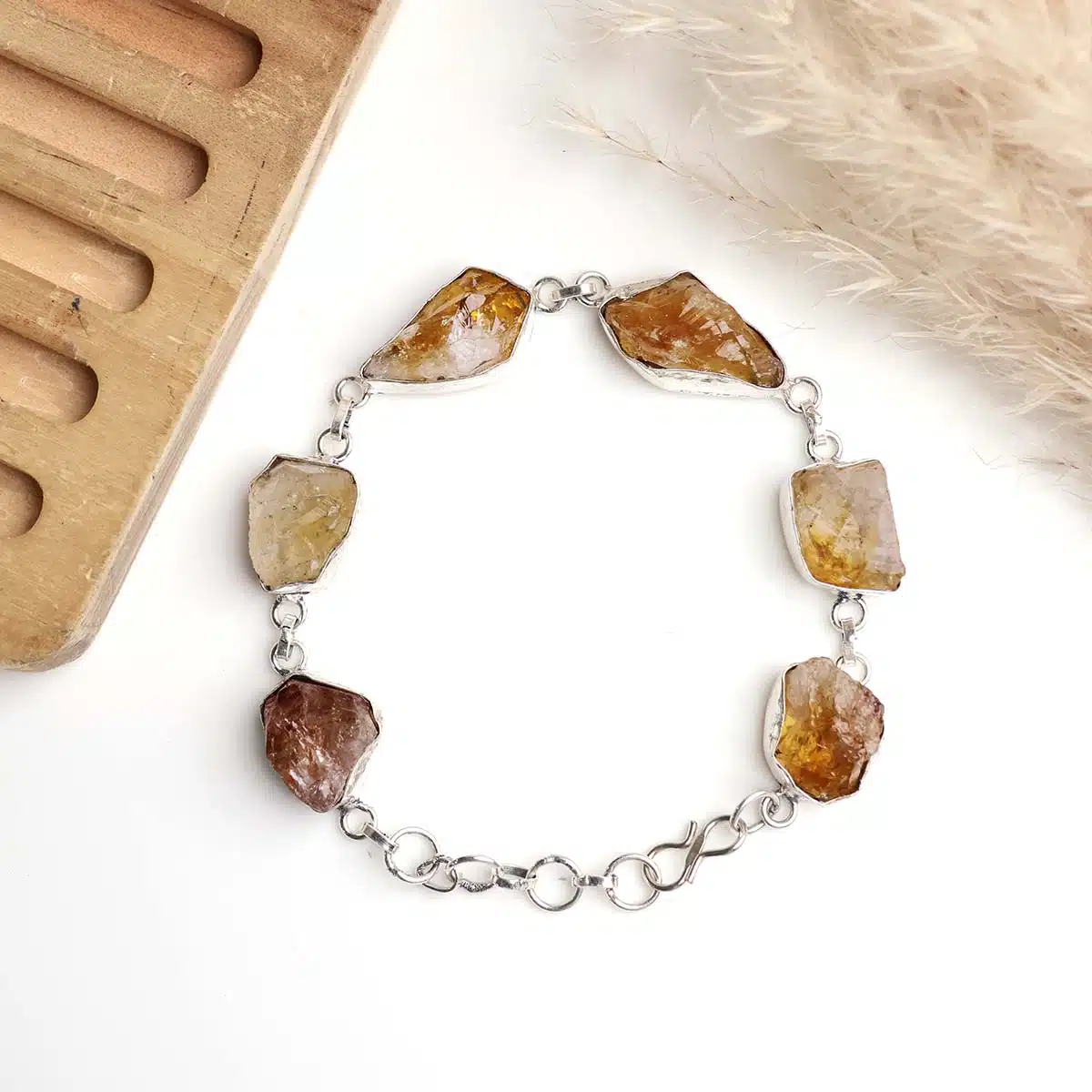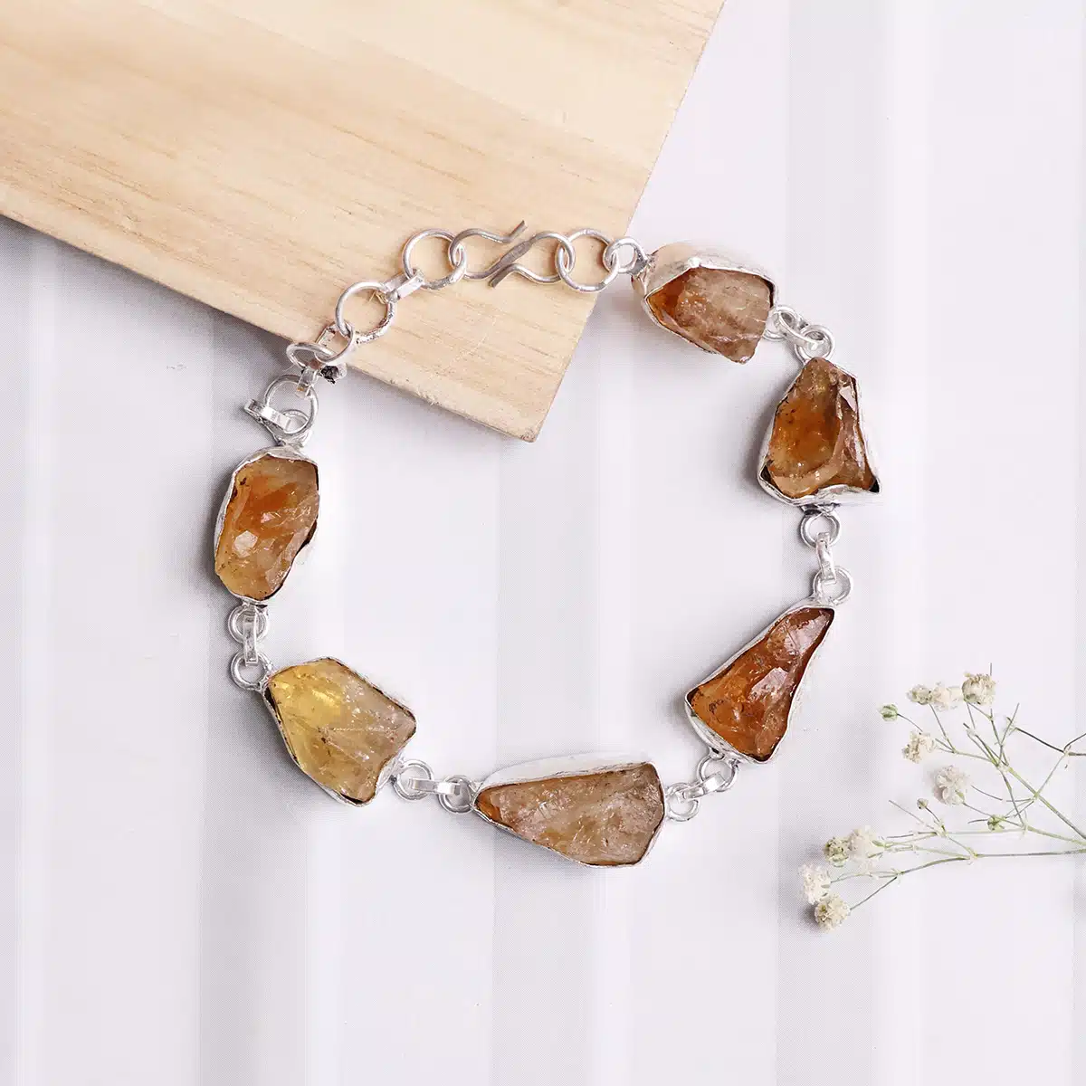 Citrine, often referred to as the “Merchant’s Stone” or the “Stone of Abundance,” is revered for its ability to attract wealth, success, and prosperity. It is believed to carry the energy of the sun, infusing the wearer with warmth, vitality, and positivity. As you adorn yourself with our Citrine Raw Bracelet, you invite these uplifting energies into your life, amplifying your ability to manifest abundance and joy.