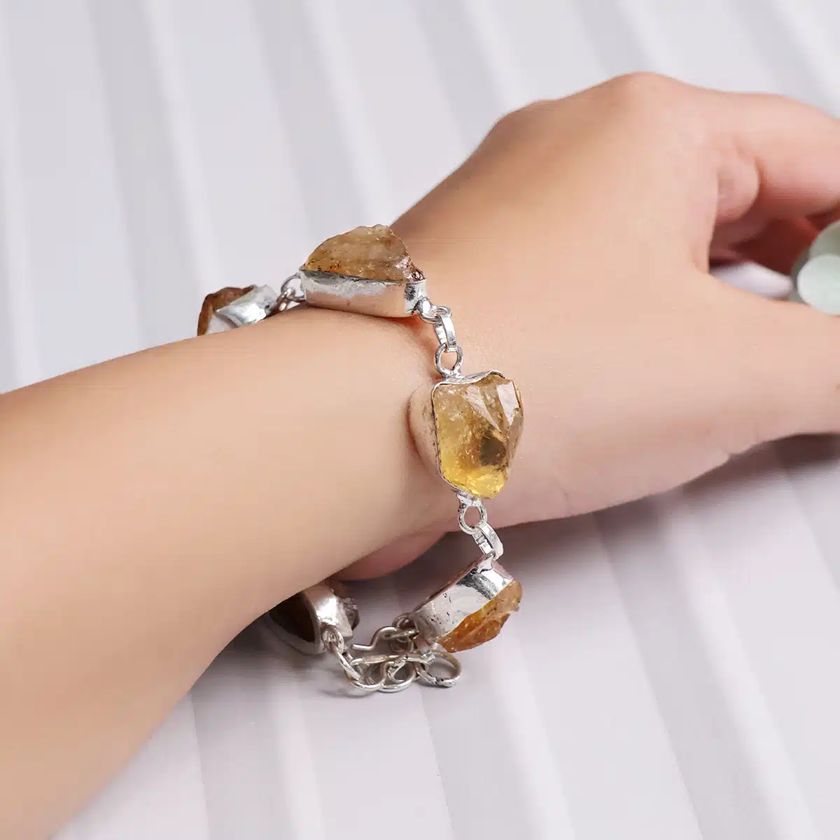 Whether you’re seeking to enhance your personal style or harness the transformative power of citrine, our Citrine Raw Bracelet is the perfect accessory. Wear it as a daily reminder to embrace the abundance that surrounds you and to radiate positivity wherever you go. Whether worn alone as a statement piece or stacked with other bracelets for a bohemian-inspired look, this bracelet is sure to captivate attention and inspire admiration.