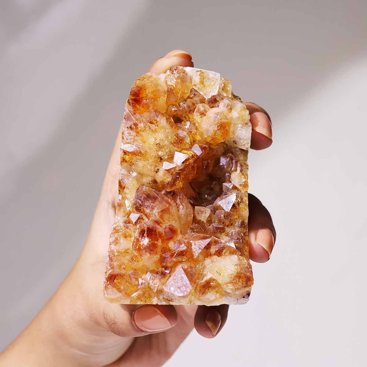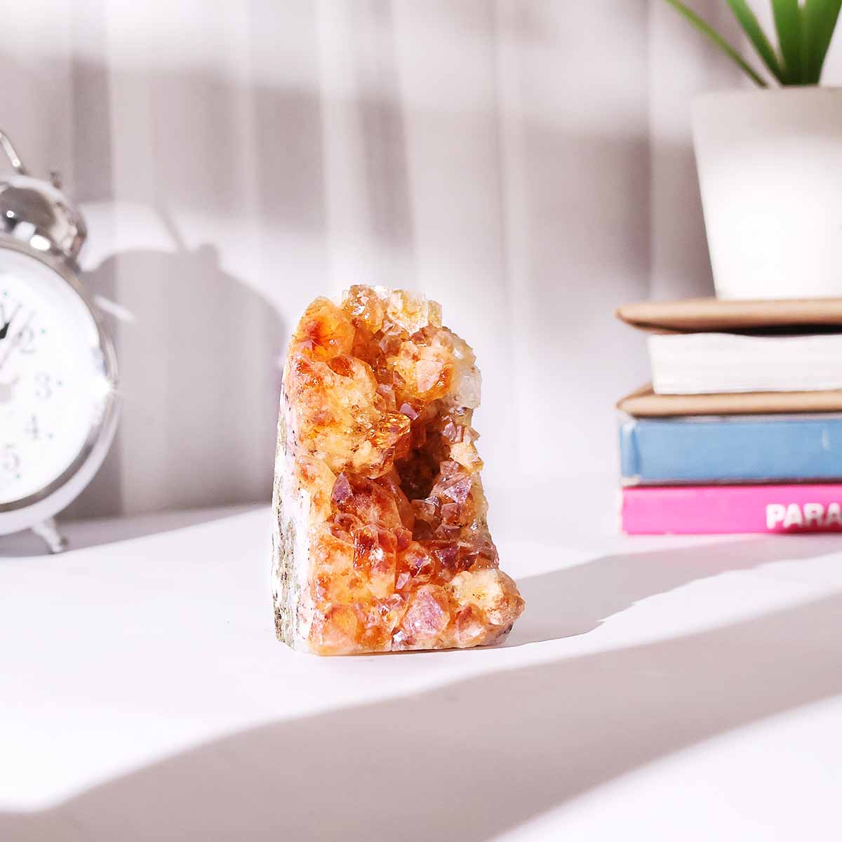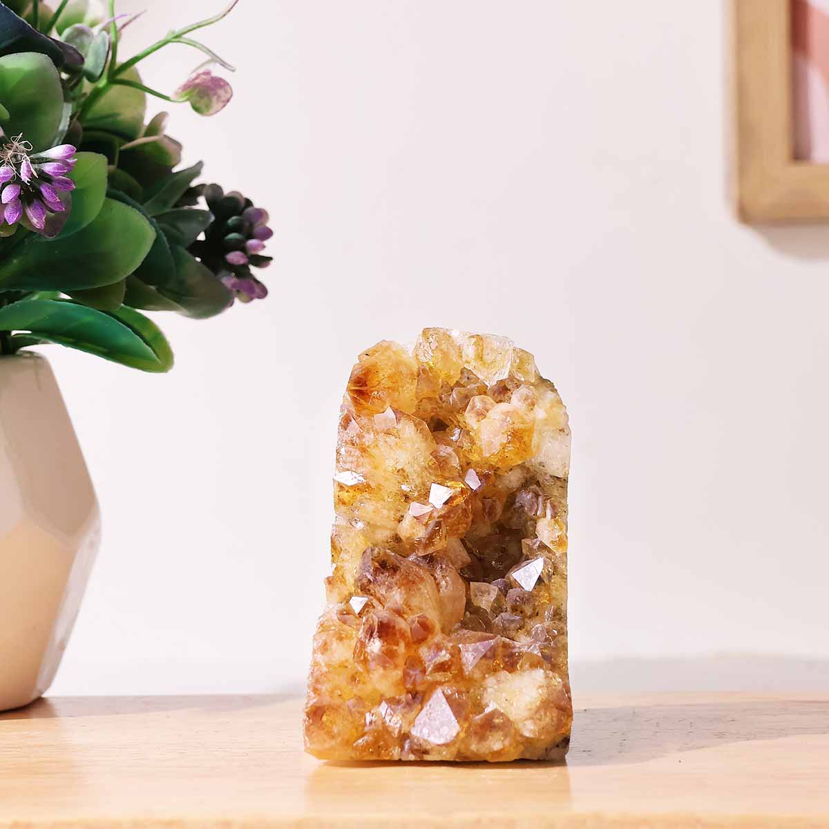Citrine Standing Cluster are here to fill your weekend with bursts of energy, joy & positivity. Citrine geodes are a radiant golden color like the sun, and that is exactly the type of qualities they bring us!