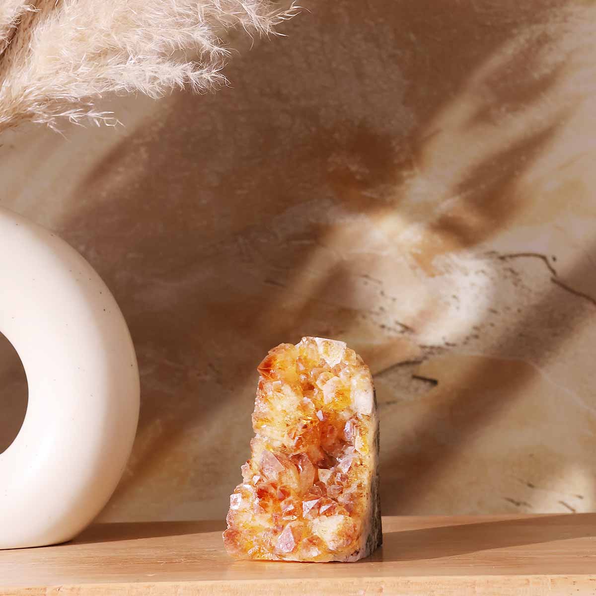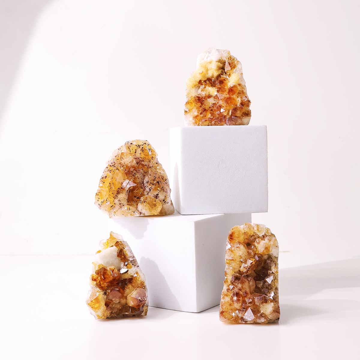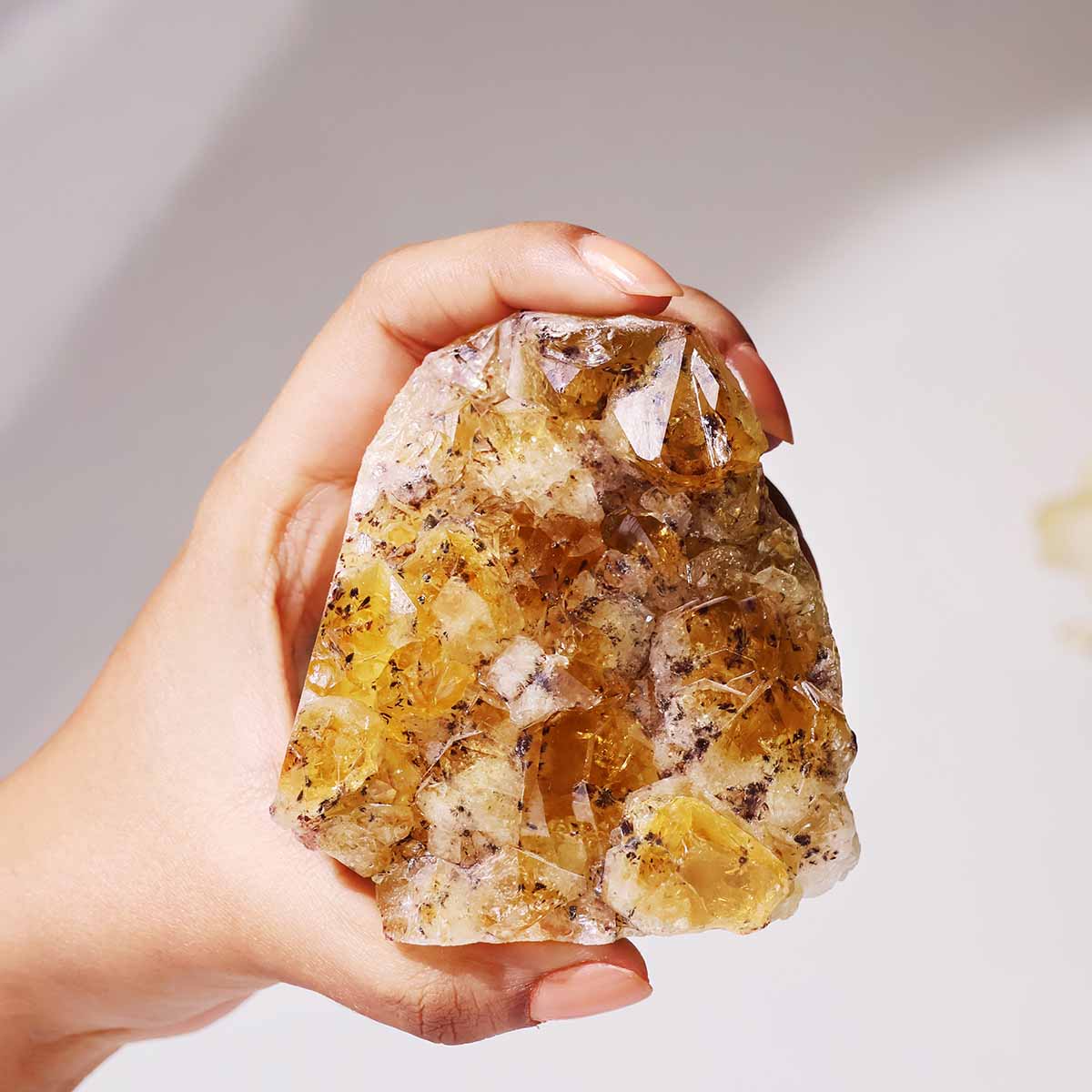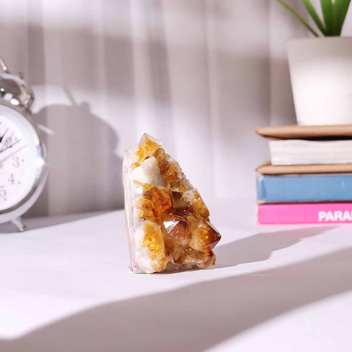 Citrine Standing Cluster are here to fill your weekend with bursts of energy, joy & positivity. Citrine geodes are a radiant golden color like the sun, and that is exactly the type of qualities they bring us!