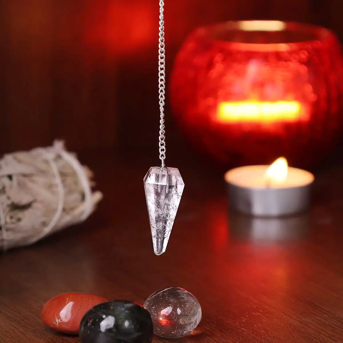 The Clear Quartz Point Pendulum from Shubhanjali is a versatile and high-vibration energy tool used for dowsing, chakra balancing, and spiritual healing. Known as the “Master Healer,” Clear Quartz amplifies energy, enhances clarity, and aligns all chakras.