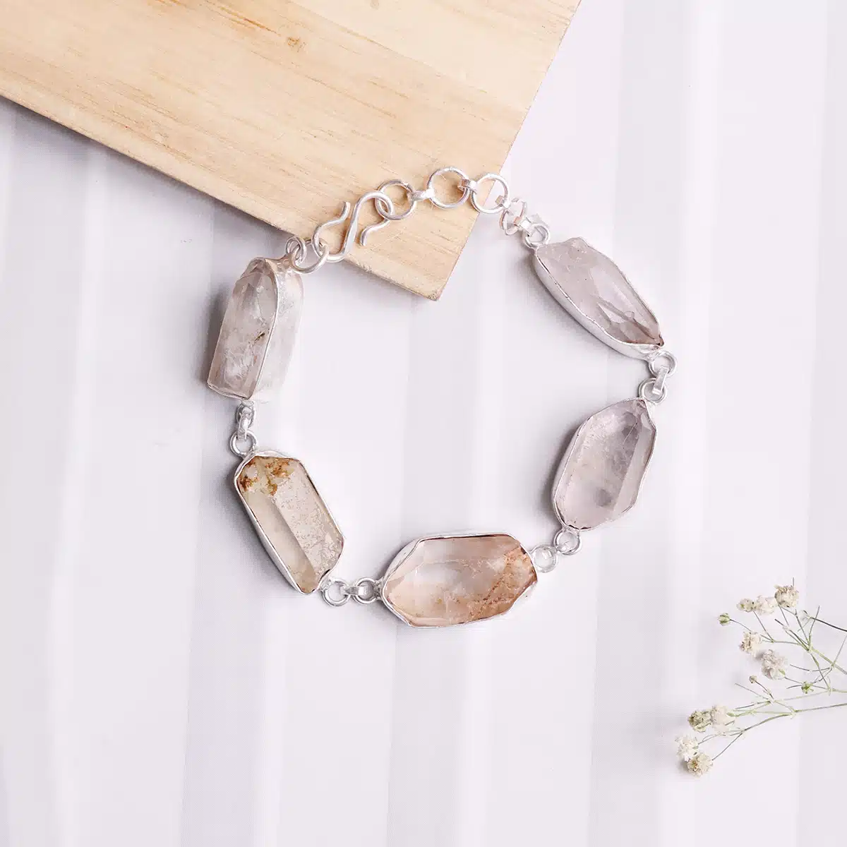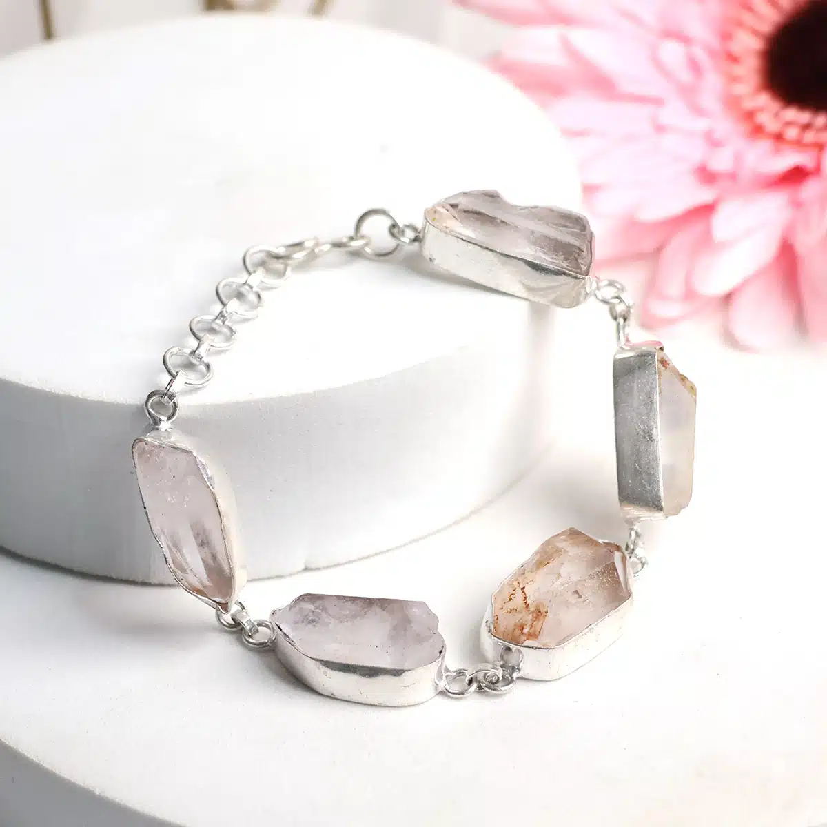 Indulge in the pure energy and exquisite charm of our Clear Quartz Raw Bracelet, meticulously crafted to elevate your style and enhance your well-being. Each bracelet features genuine raw Clear Quartz crystals, renowned for their remarkable clarity and potent metaphysical properties.