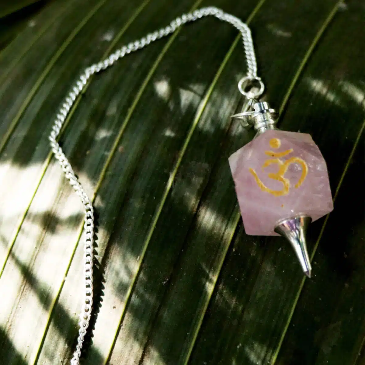 Cube Pendulum Stone with OM and Chain ( Amethyst, Rose Quartz )