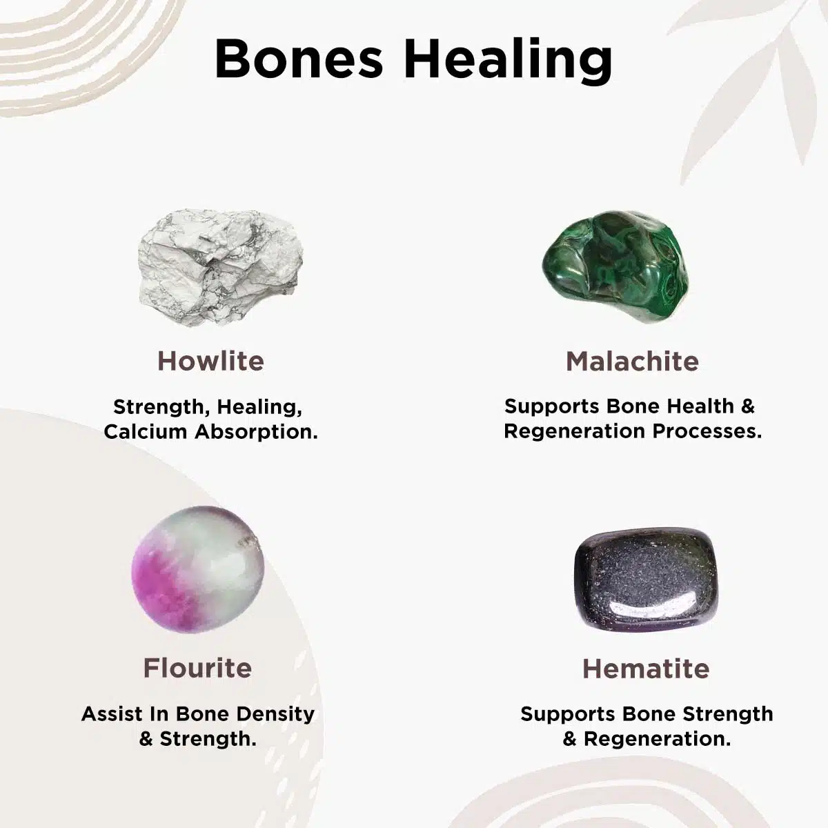 Designed to support and enhance the health and strength of your bones, this bespoke bracelet combines the healing properties of Howlite, Malachite, Fluorite, and Hematite. Each stone is carefully chosen to work synergistically, promoting overall well-being and stability.