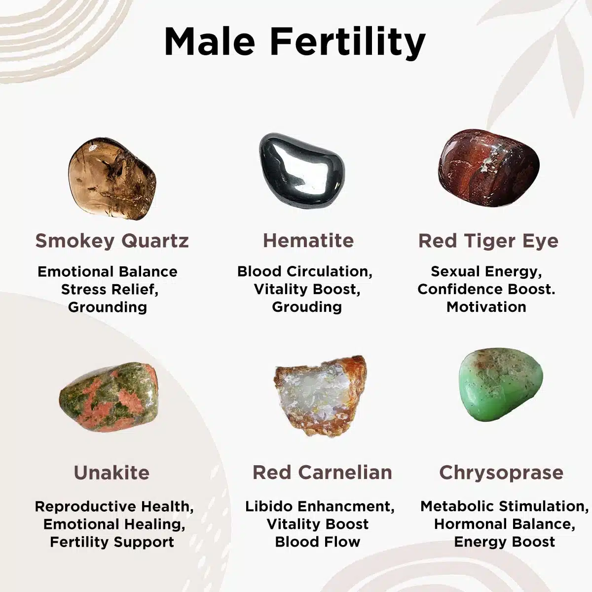 Embrace the natural energies of healing and fertility with our customized crystal bracelet, meticulously designed to support male fertility intentions. Each stone is thoughtfully chosen for its unique properties that align with the journey towards enhancing male fertility and overall well-being.