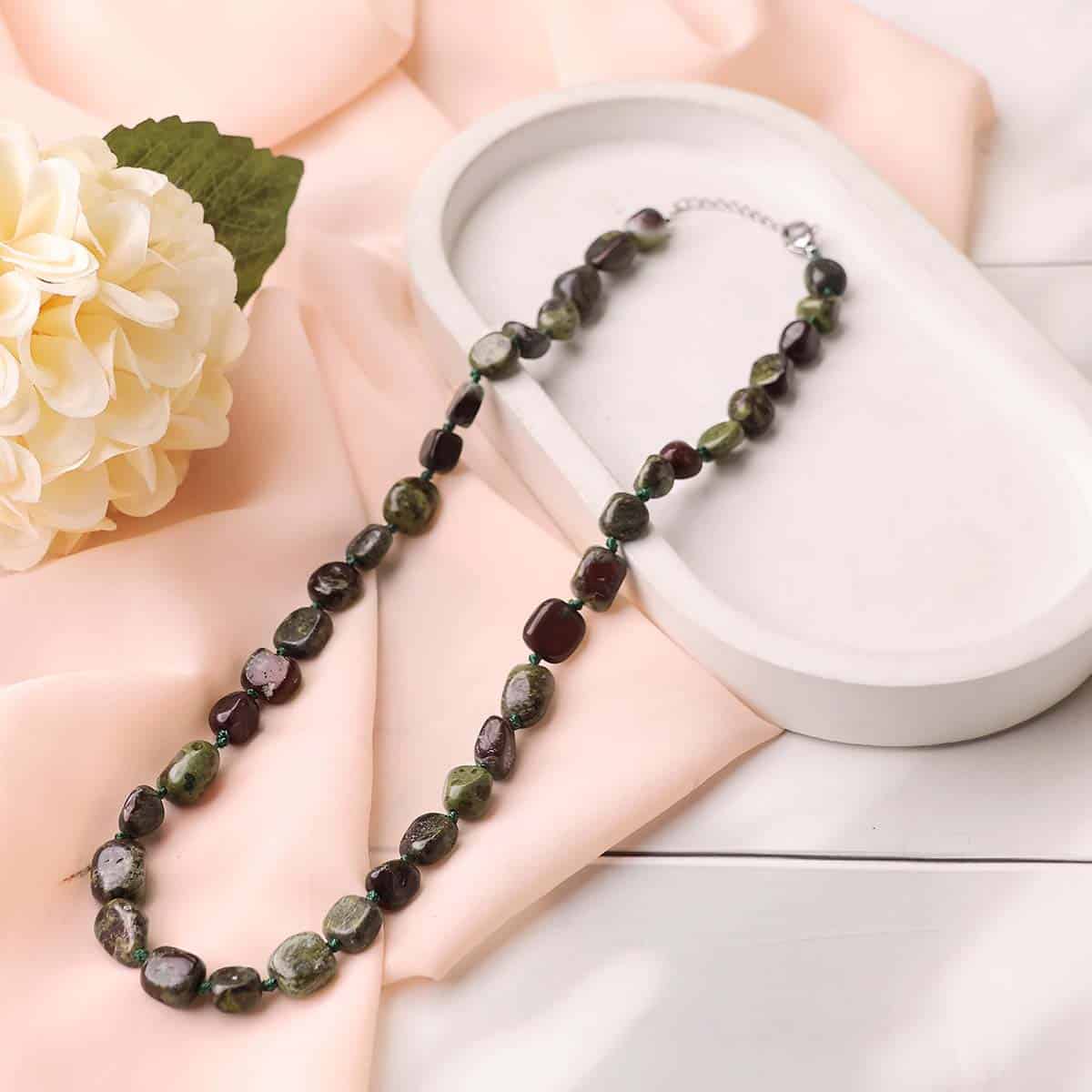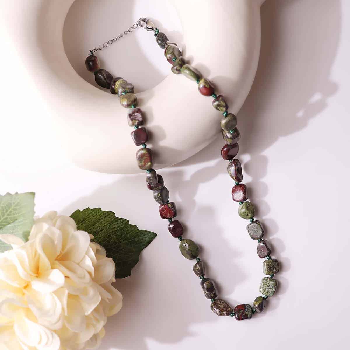 Benefits of Dragon Blood Jasper Small Tumble Necklace :