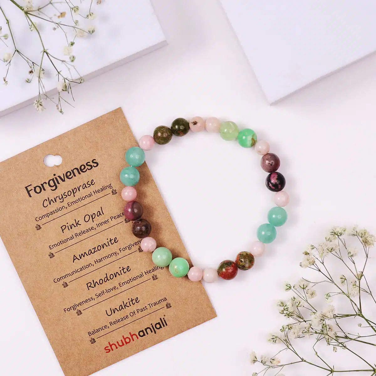 Forgiveness is a powerful and healing emotion, and customizing a bracelet with crystals that embody its energy can enhance its effects. Here are some benefits of forgiveness, along with the properties of the crystals you mentioned: