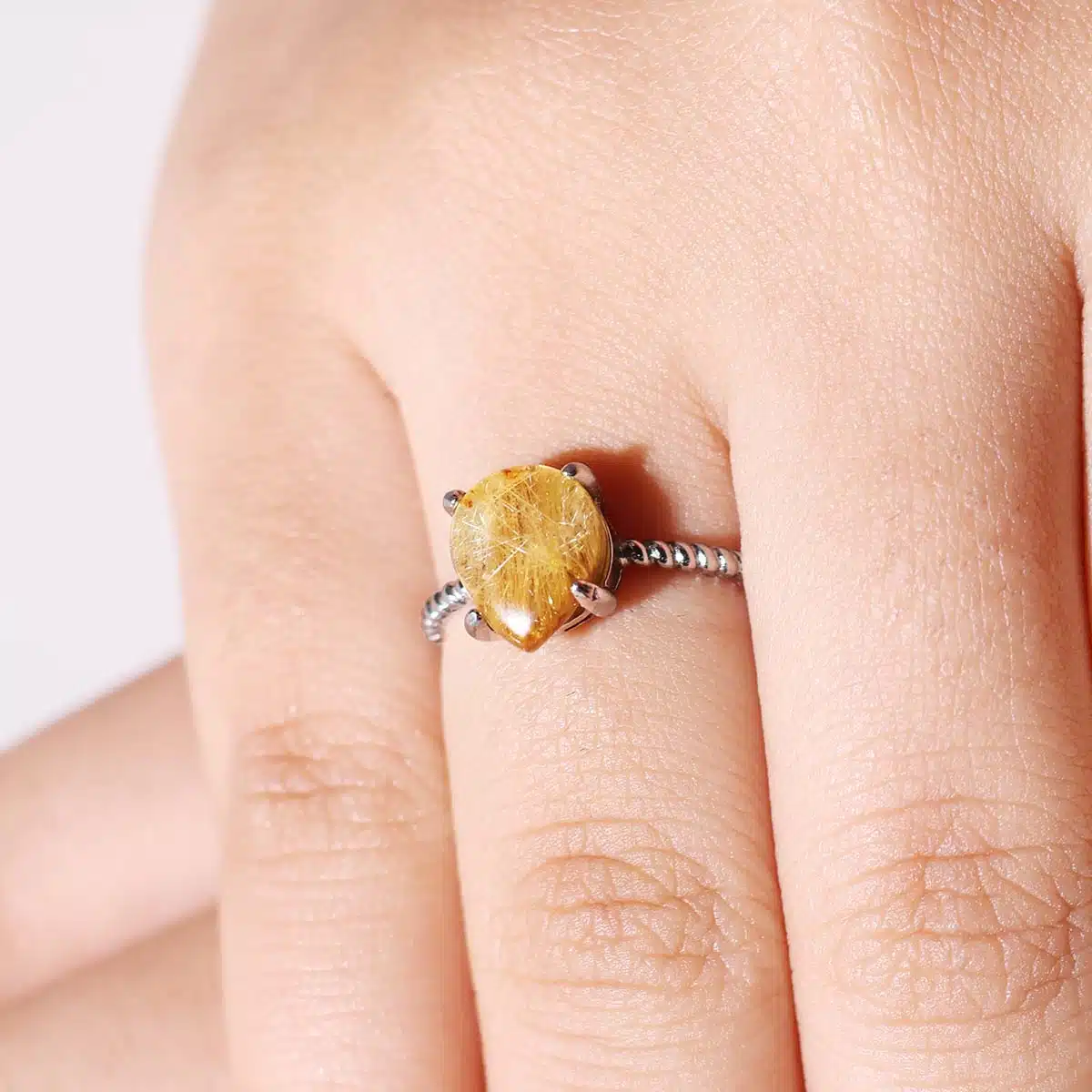 Golden Rutile | Adjustable Size | Oval Shape | 925 Sterling Silver