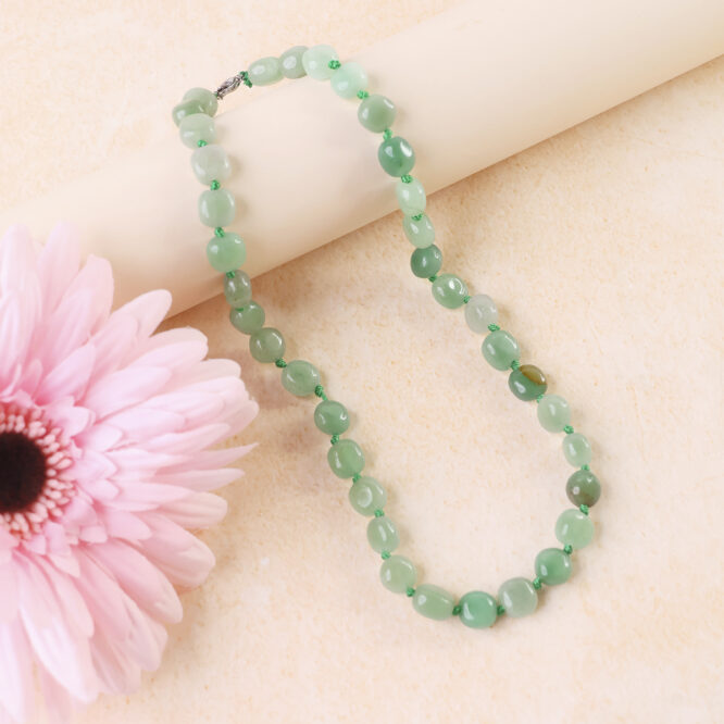 - The Green Aventurine Tumble Necklace soothes anxiety and stress.