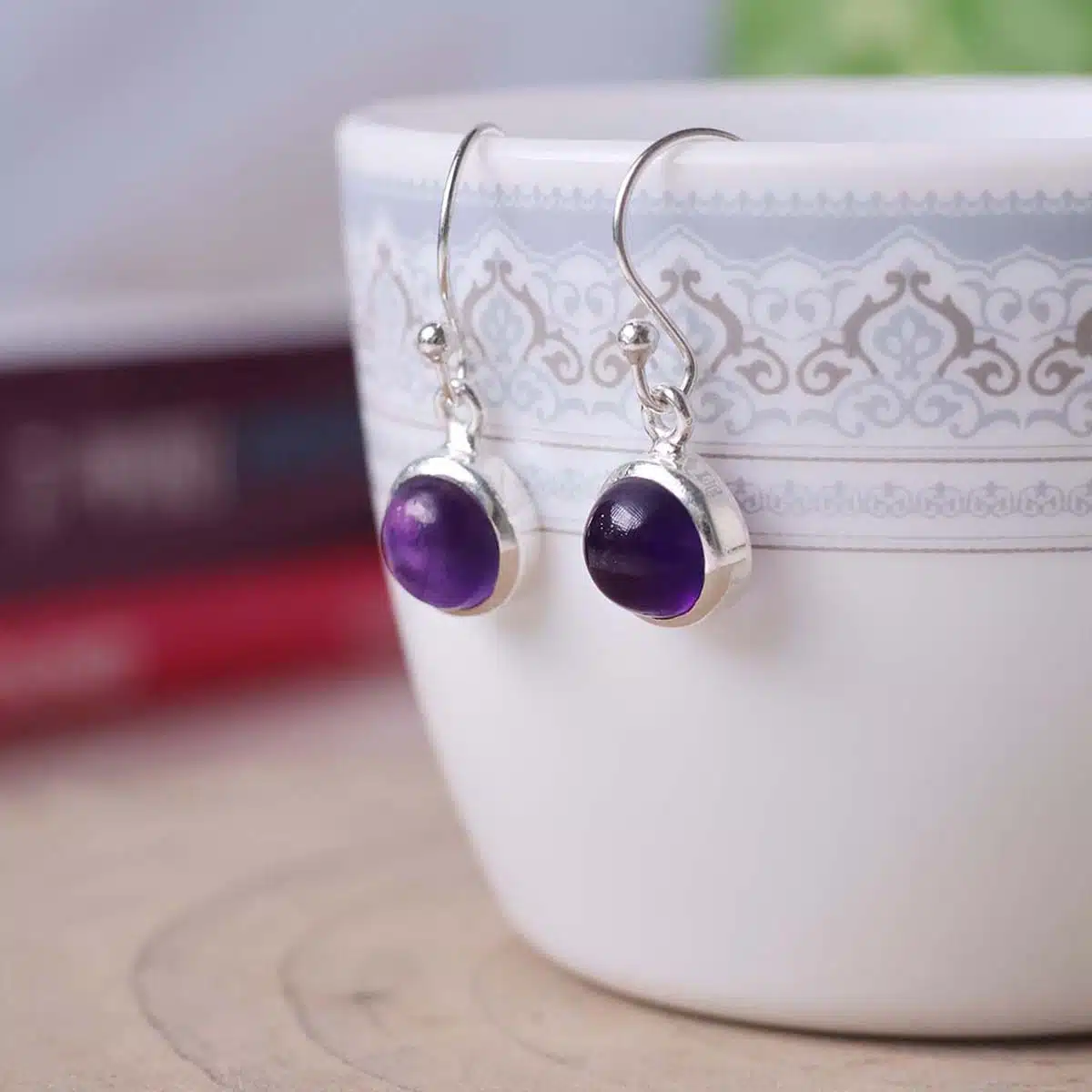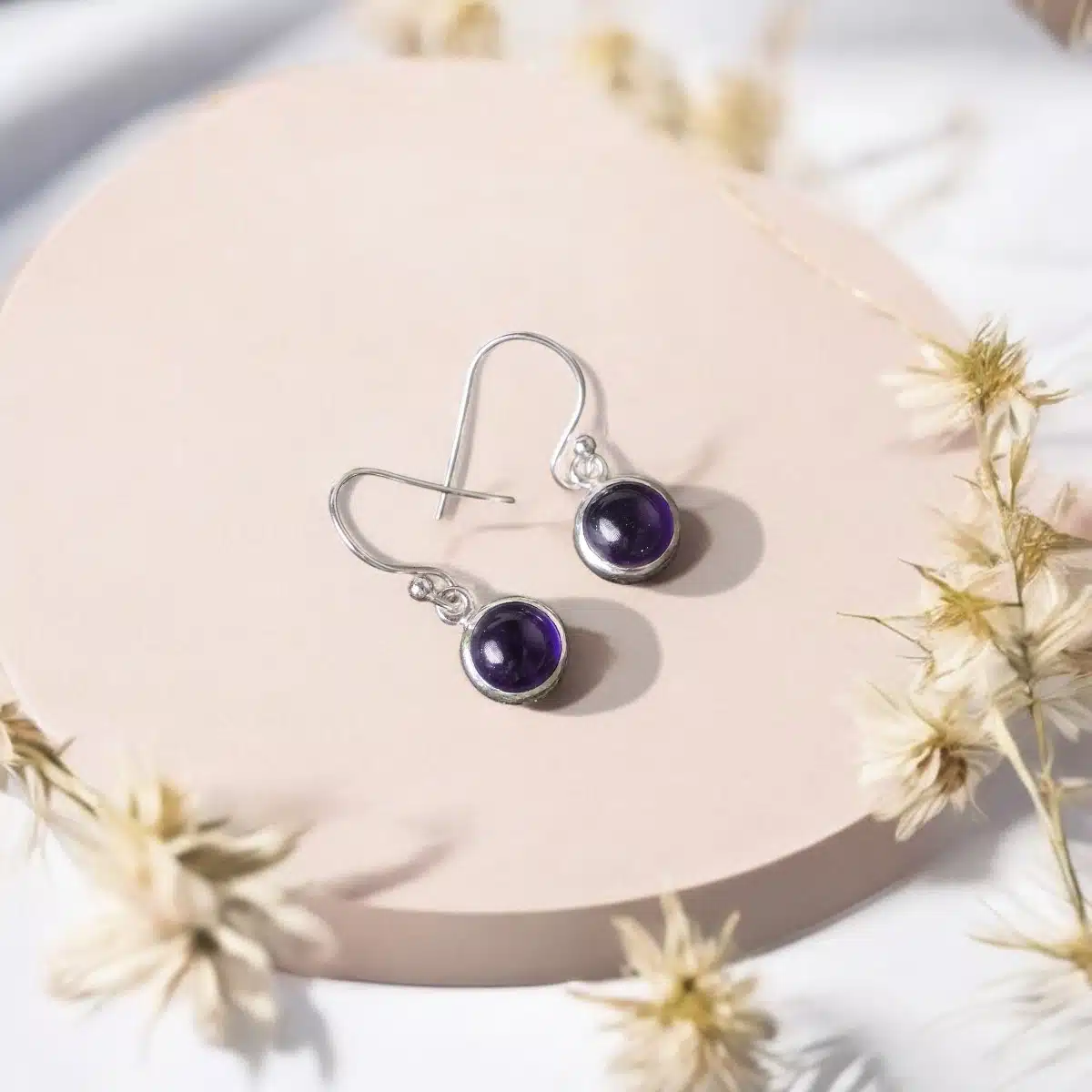 - Amethyst earrings blend elegance and spiritual energy, offering a calming, protective, and intuitive boost. The deep purple hue complements the shimmering silver, making these earrings perfect for spiritual and fashionable wear.