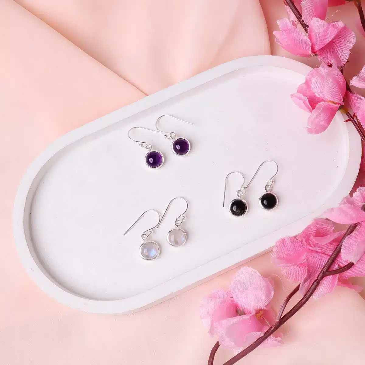 - Black Onyx earrings exude power, grounding, and protection. The deep black stones contrast beautifully with sterling silver, making these earrings a bold yet elegant statement piece.