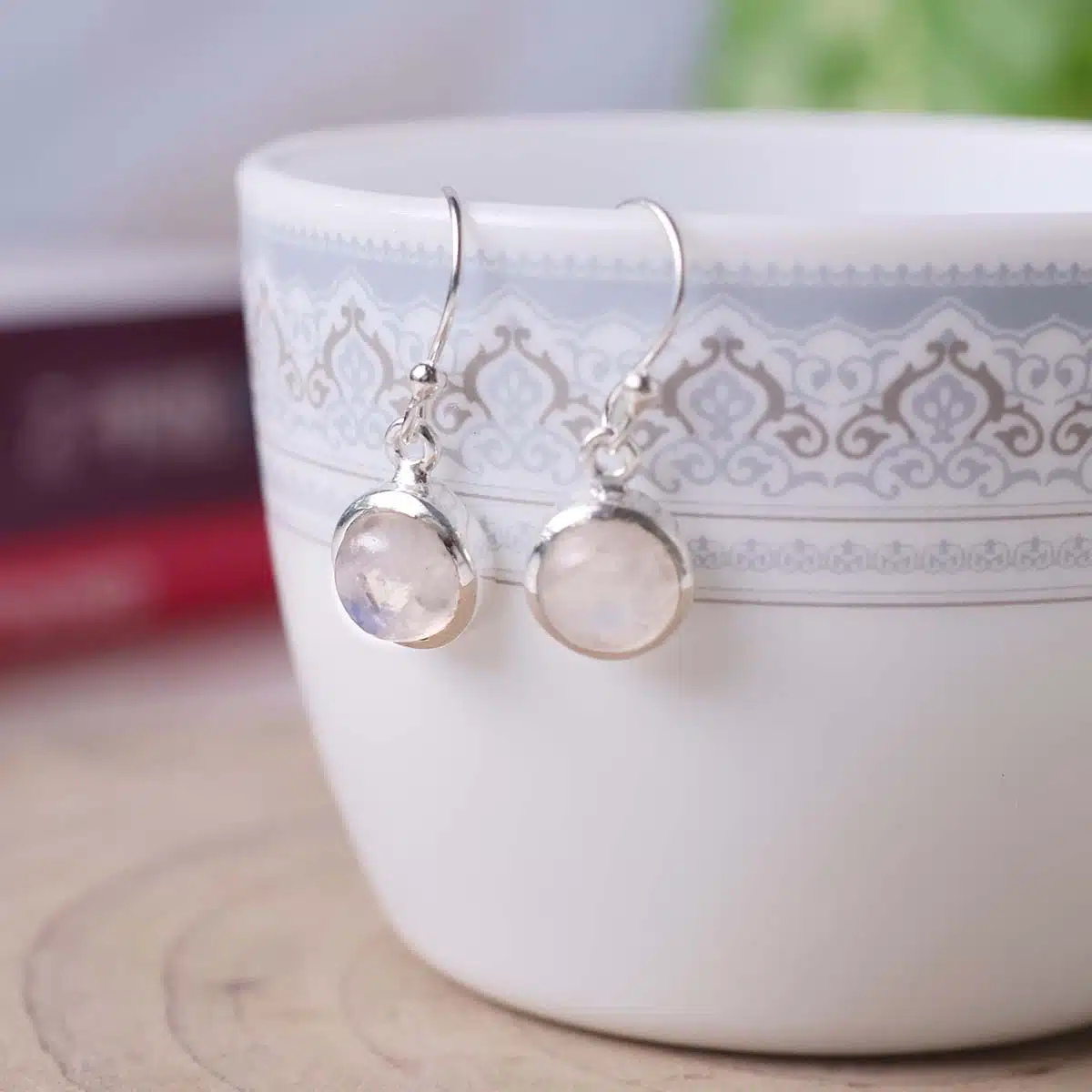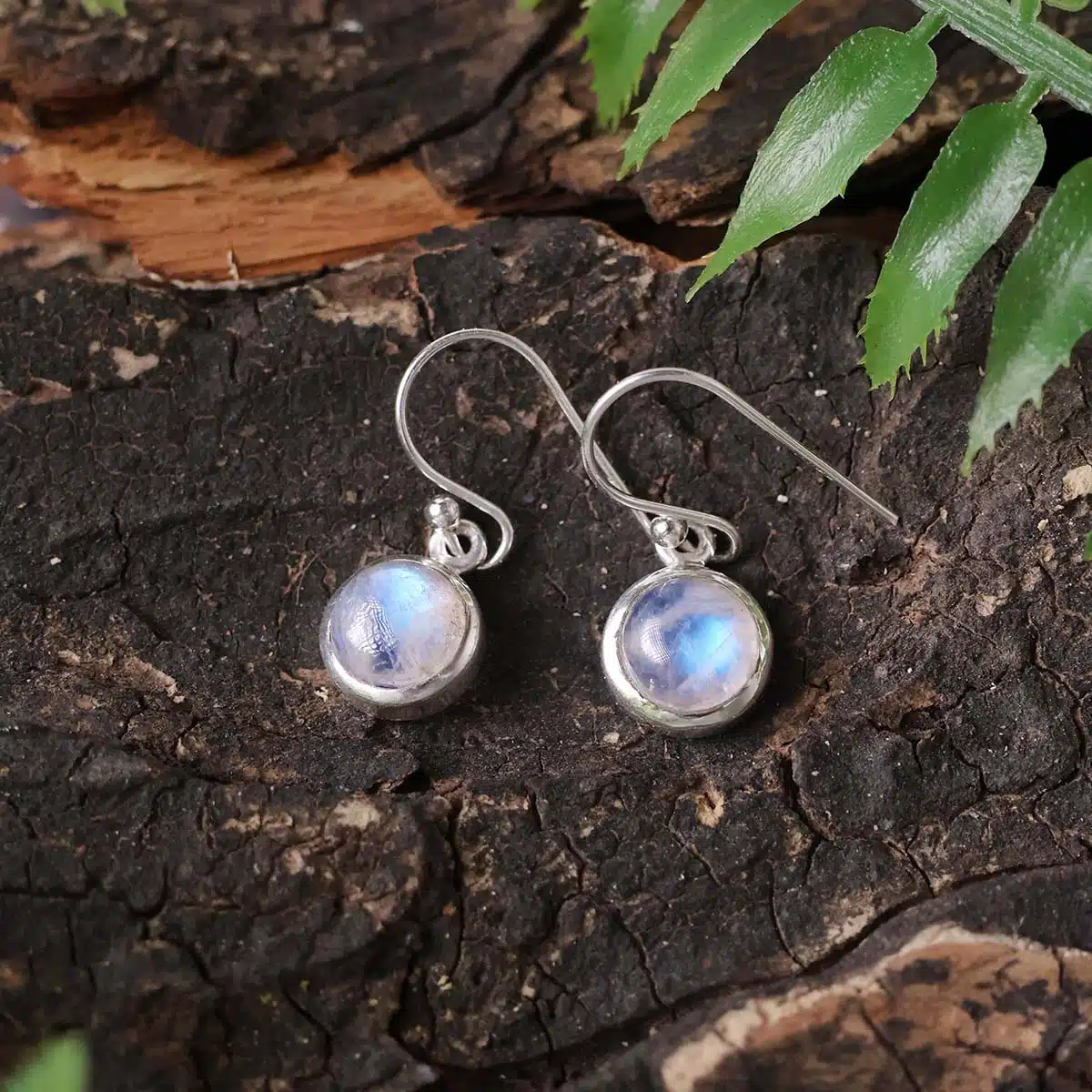 - Rainbow Moonstone earrings shimmer with iridescent hues, symbolizing intuition, feminine energy, and inner strength. The silver setting enhances its spiritual and calming properties, making it perfect for daily wear or special occasions.