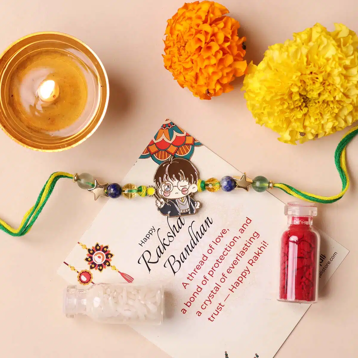 - Harry Potter Charm – A magical symbol of imagination, learning, and adventure—making this rakhi exciting and meaningful.