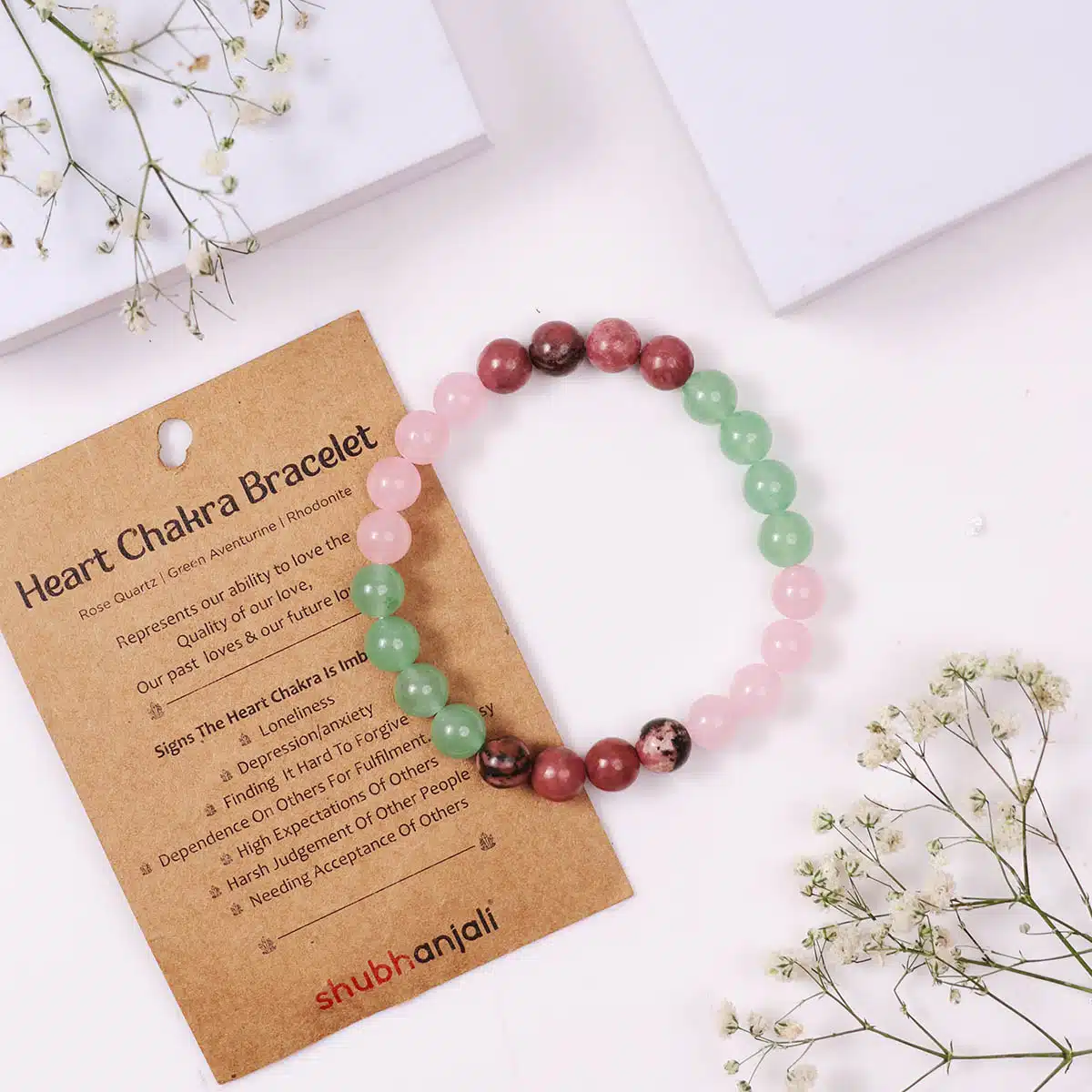 Use Crystal Stone -Rose Quartz, Rhodonite and Green Aventurine.